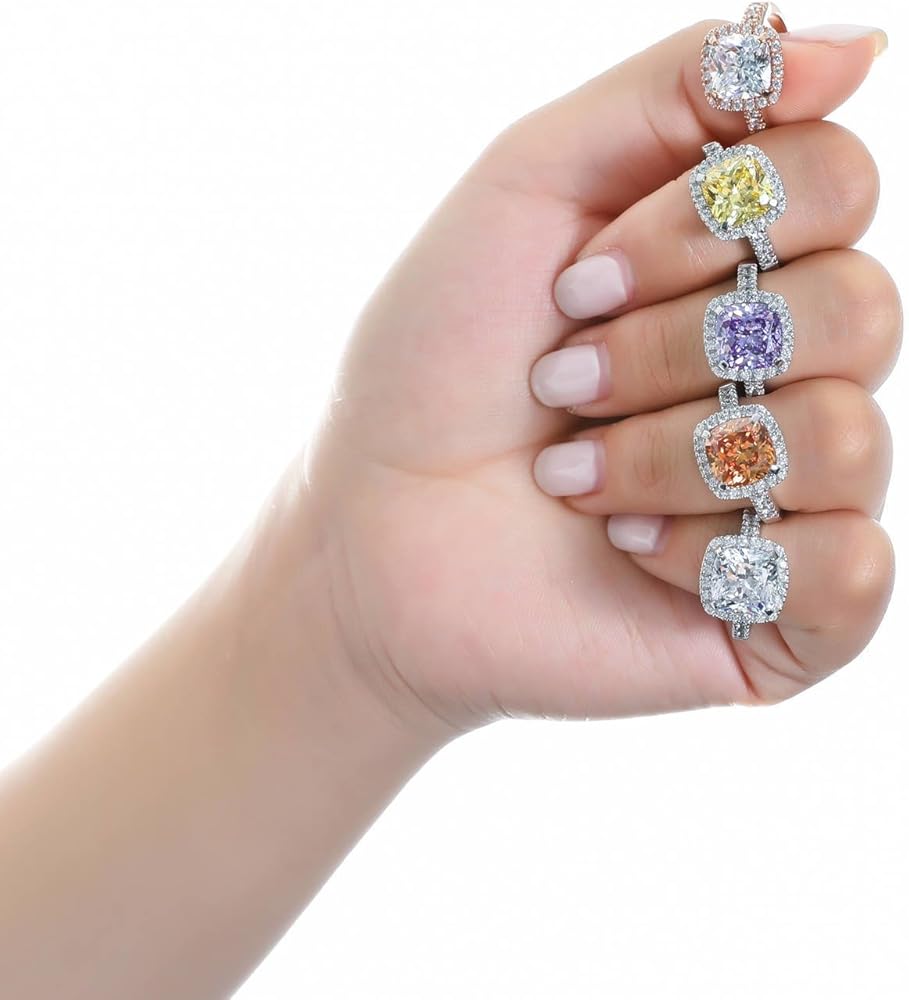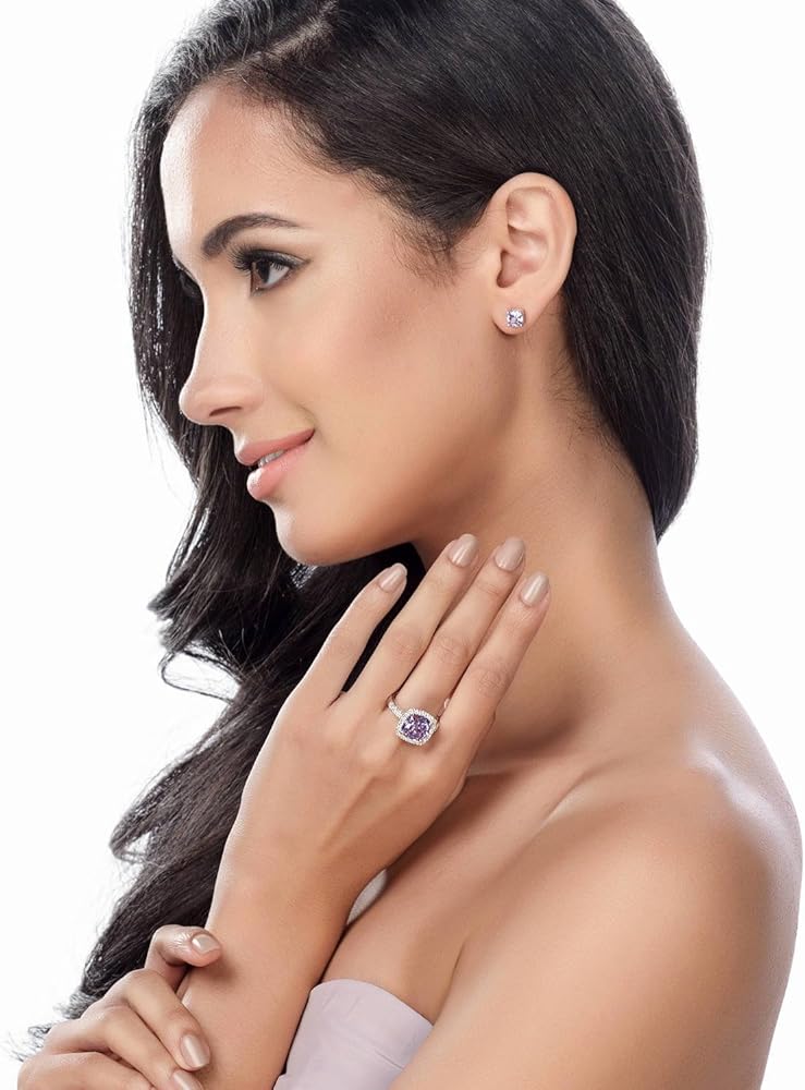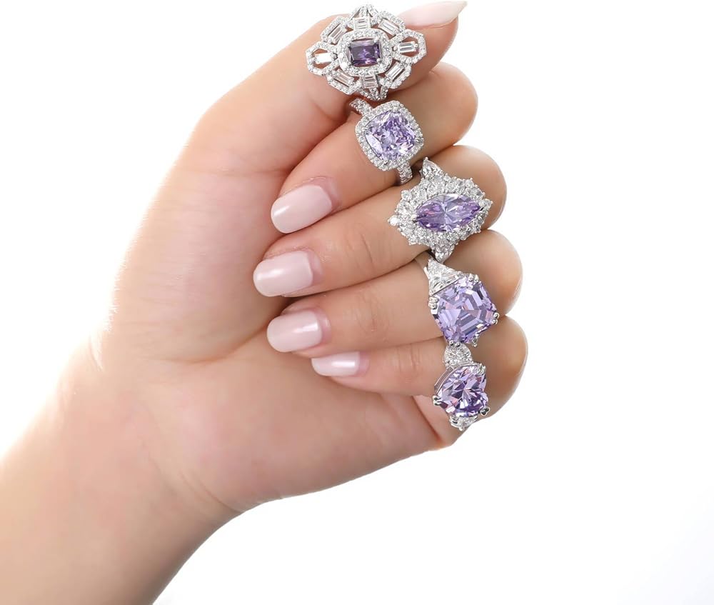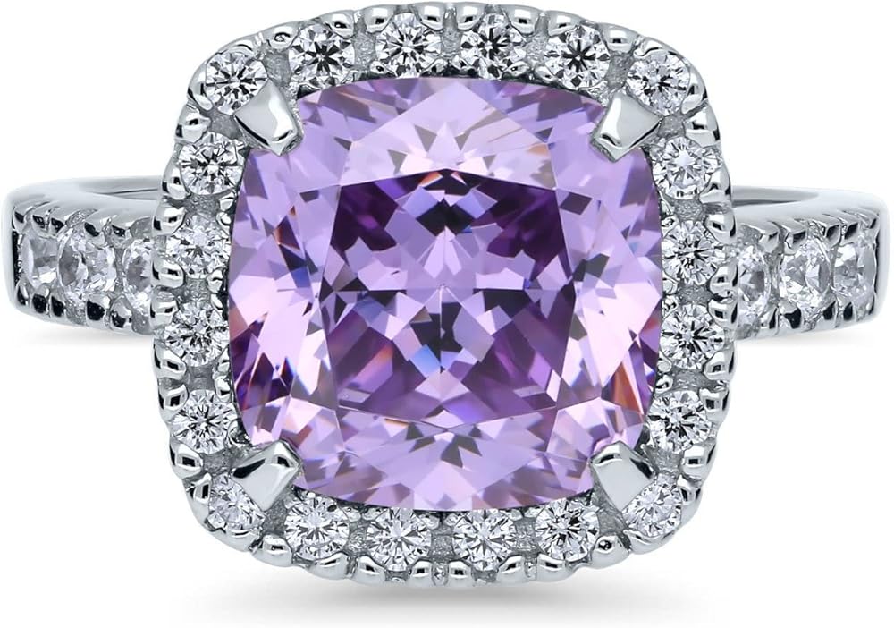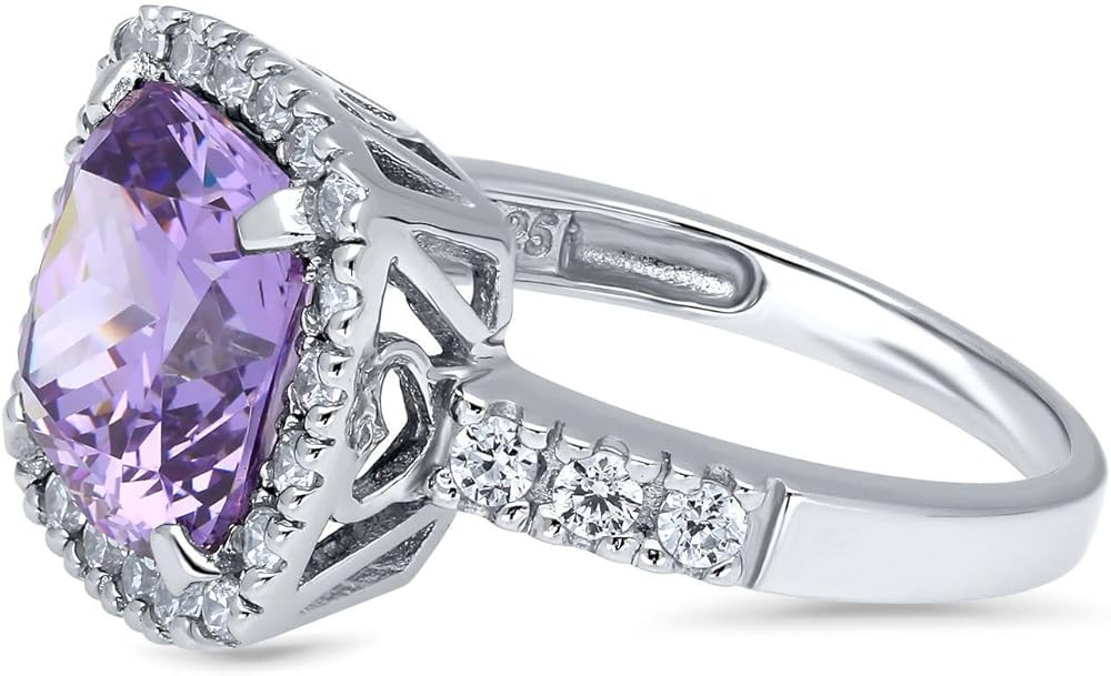 BERRICLE الفضة الاسترليني هالة الأرجواني وسادة قطع زركون تشيكوسلوفاكيا بيان كوكتيل خاتم الموضة للنساء، مطلي الروديوم حجم 4-10