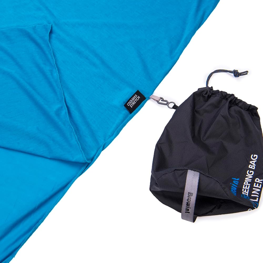 بطانة كيس النوم برونت كولماكس قابلة للتمدد، Coolmax هي خيوط تقنية عالية من إنتاج INVISTA، فقد صنعت البطانة الخاصة بنا ماصة للرطوبة وفائقة النعومة وخفيفة الوزن للغاية. مثالي لجلبه إلى الفنادق أو مرافق الشباب أو كوخ جبال الألب أو القوارب أو الطائرات أو القطارات أو أي مكان آخر يمكنك أن تسافر فيه. مضغوطة في حقيبة حمل صغيرة جدًا.