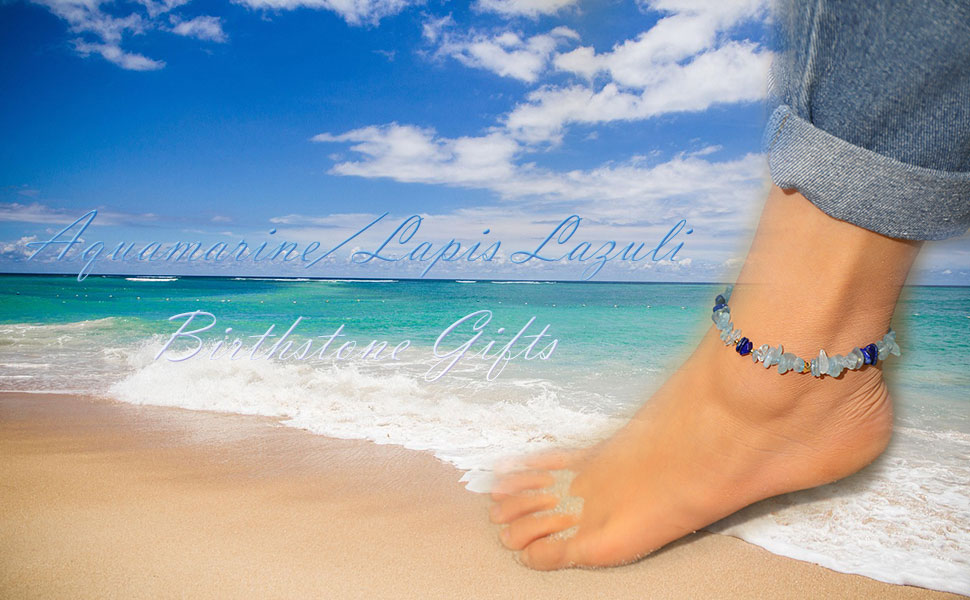 Jewever الزبرجد / رقائق اللازورد هبطت الأحجار الخلخال شفاء بلورات خلخال أساور للنساء الطاقة الأحجار الكريمة مارس جوهرة الميلاد الهدايا والمجوهرات