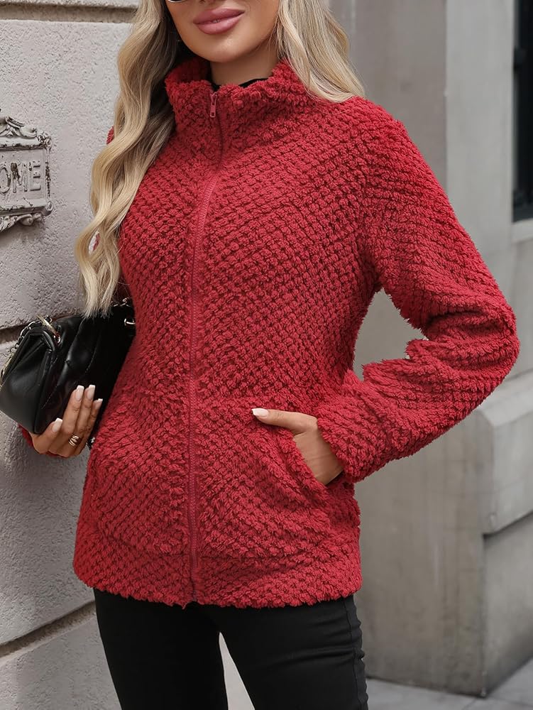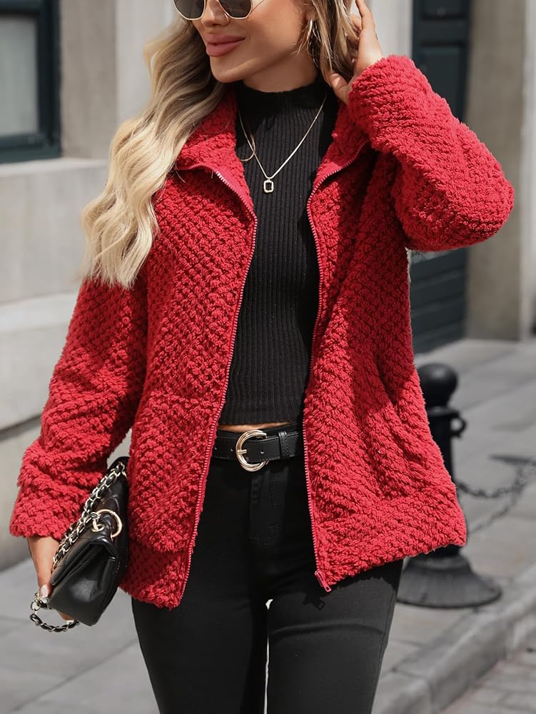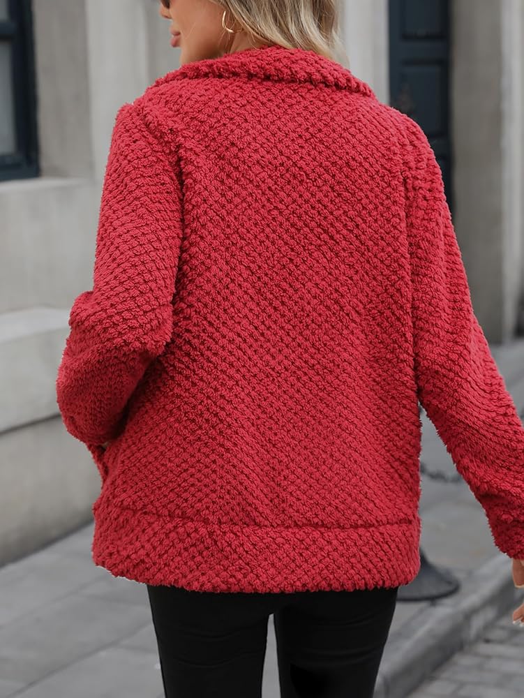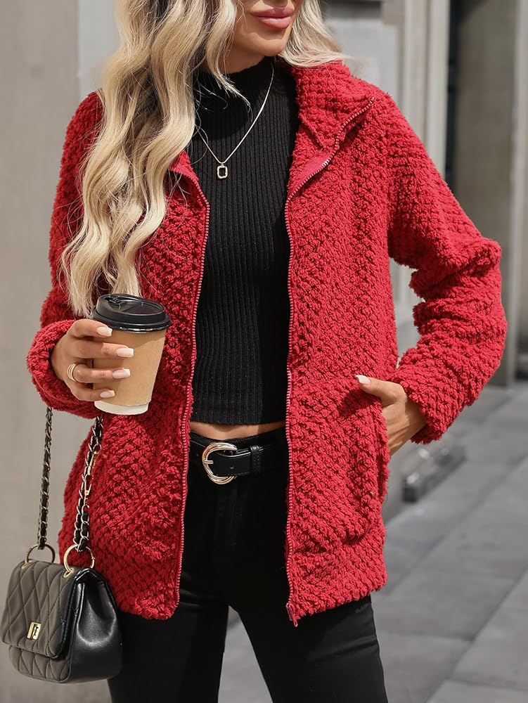 تتميز هذه السترة طويلة الأكمام بمقدمة مفتوحة مريحة وسحاب كامل، يكملها ياقة طية صدر السترة ومعطف من الفلانيل المنفوش، مما يجعلها مثالية للارتداء الكاجوال والمريح.