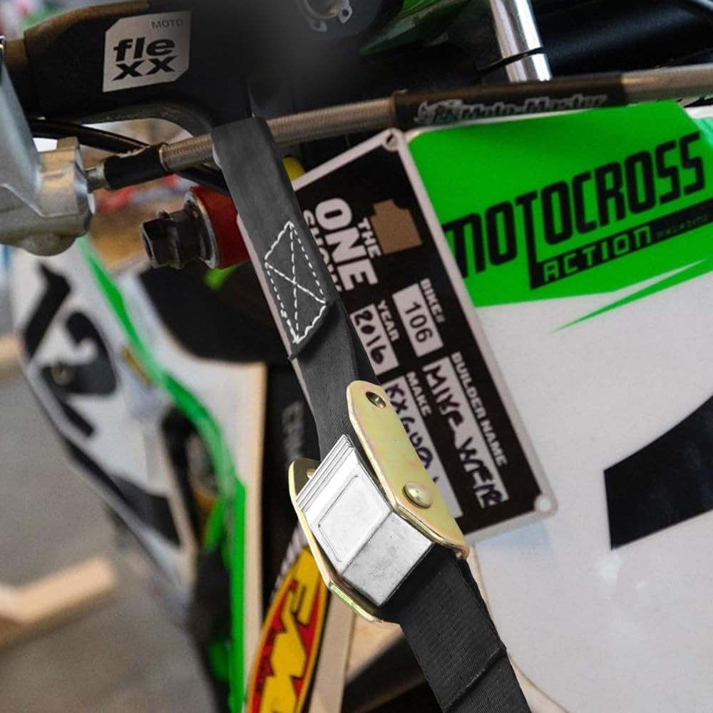 --The bicycle tie down straps are made of high-density material, which is colorfast, resistant. The double diamond stitching webbing makes the tie down straps much more heavy duty than other tie downs.