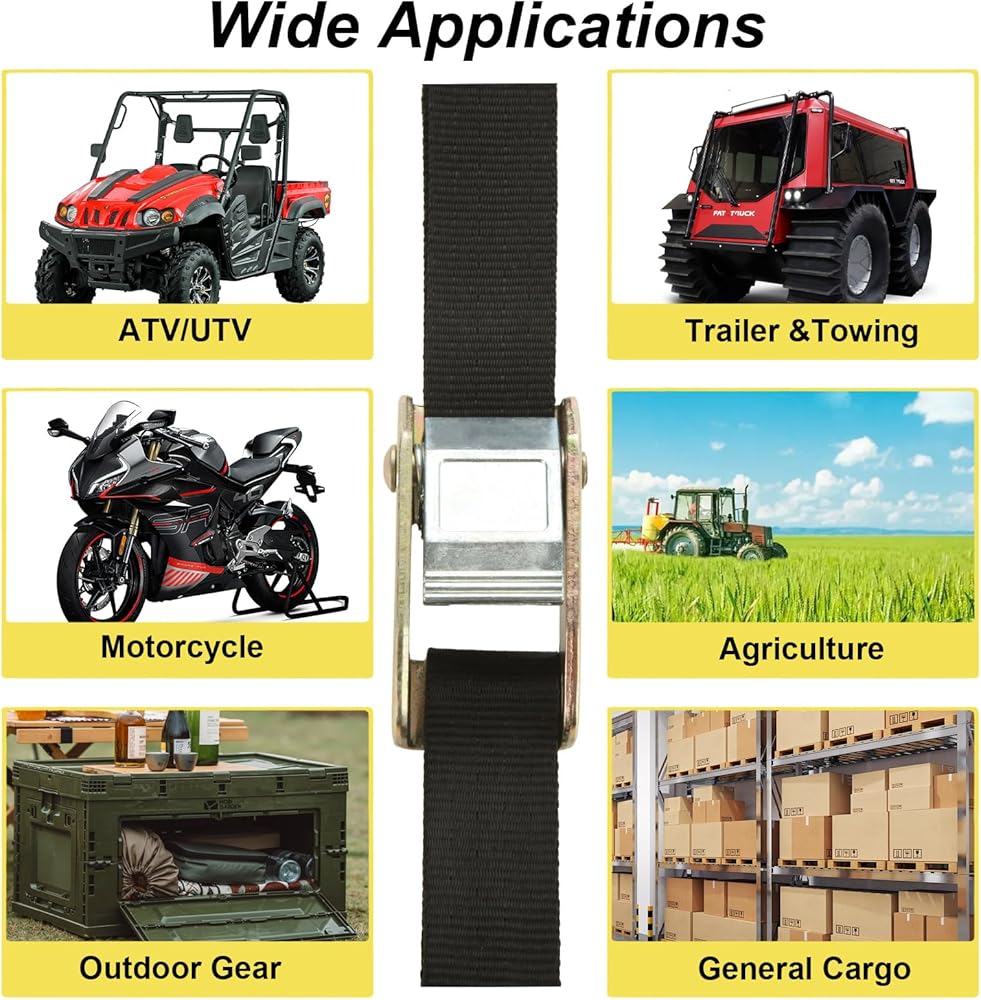 -- You don't have to be paranoid about a hook sliding out of place as you navigate rough terrain. This tough ratchet straps heavy duty keeps your cargo secure in any tough conditions.