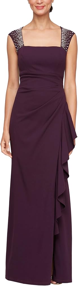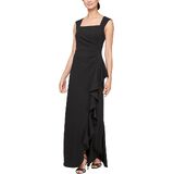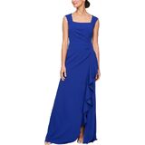 Embrace modern elegance with the Alex Evenings Women's Long Cascade Ruffle Sleeveless Dress. This stunning gown, made from buttery crepe fabric, is designed to flatter every inch of you, offering a sleek and classic silhouette. The cascade ruffle skirt detail adds a touch of modern sophistication, making it the perfect choice for wedding receptions, formal events, or galas. The chic cutaway neckline enhances the overall design, ensuring you exude grace and style at any event. This dress is the epitome of timeless beauty and contemporary charm.