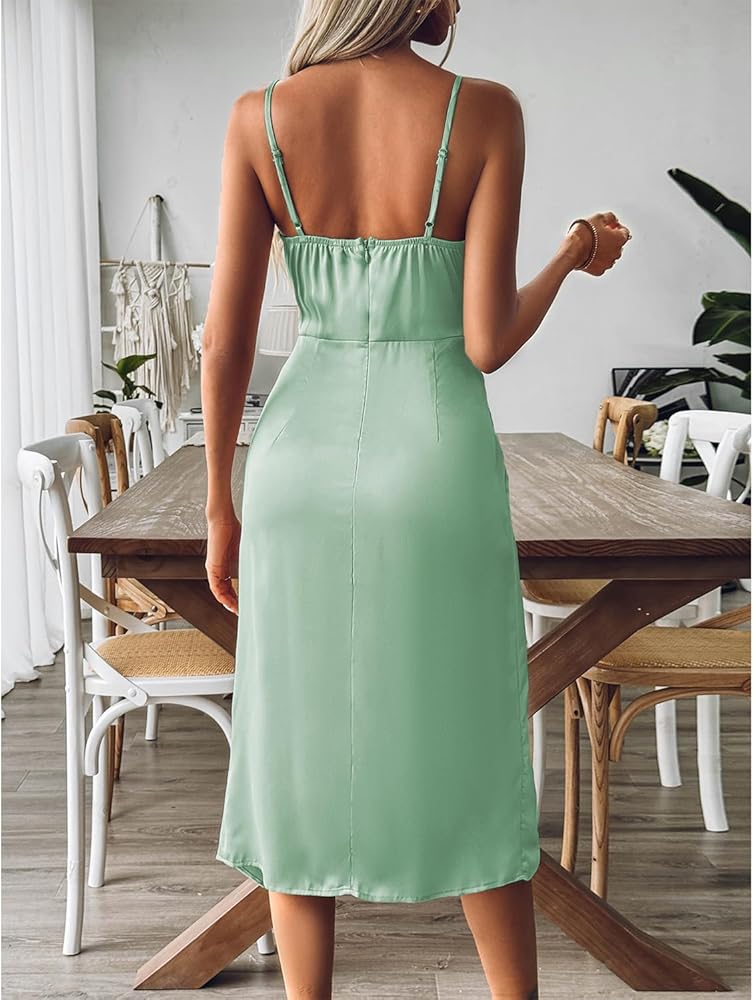 أناقة مذهلة برقبة على شكل حرف V: استمتع بالأناقة في فستاننا ذو الحزام السباغيتي متوسط الطول، مثالي لحفلات الزفاف والمناسبات المسائية وحفلات الكوكتيل.