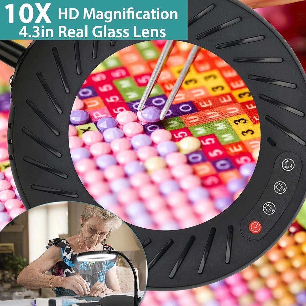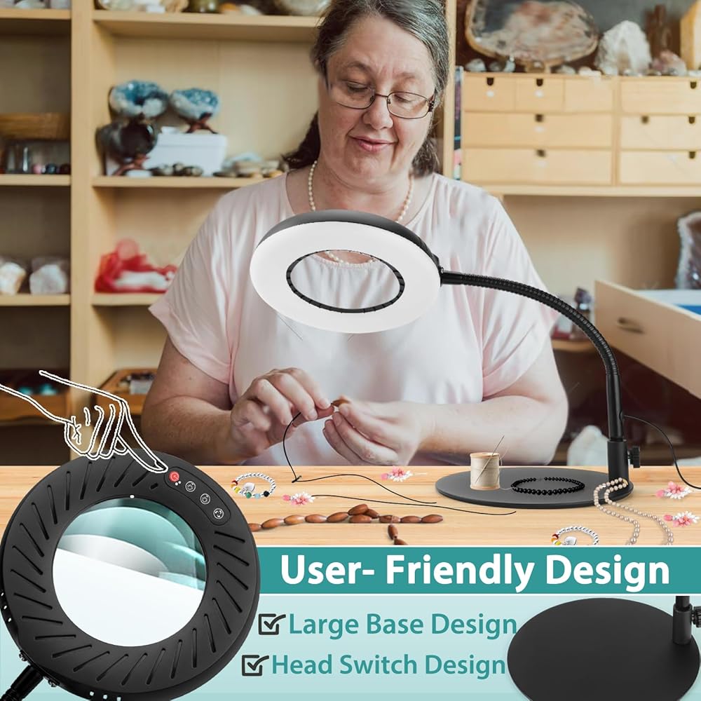 زر مفتاح المصباح المريح: تم تصميم زر التبديل الخاص بنا في رأس الزجاج المكبر المضيء، ومفتاح التحكم في متناول اليد، ولم تعد بحاجة إلى إيقاف العمل باليد، والانحناء للأسفل، والنظر حول مفتاح التحكم. حرر يديك، وركز على عملك، وأكمل مهامك بسهولة. مثالية للنمذجة والنحت والحياكة والصياغة وربط الذبابة والخرز والرسم الماسي والحياكة وصناعة المجوهرات ومعدات الإصلاح وغيرها من الأعمال القريبة.