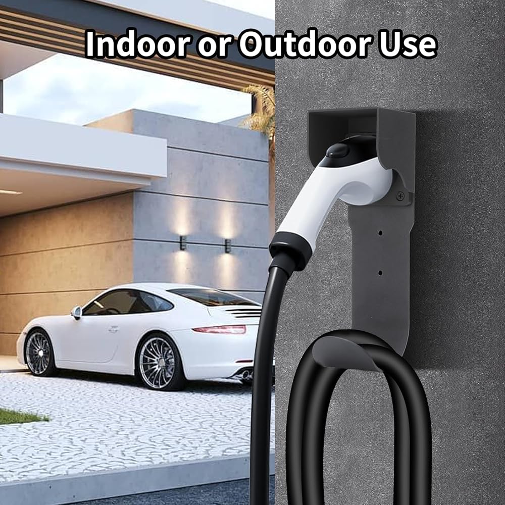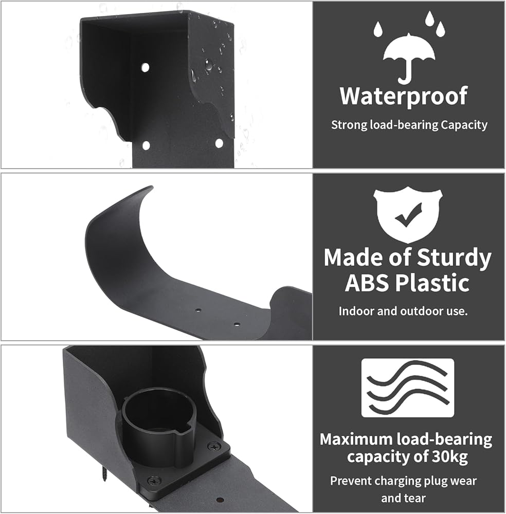 • High-Quality Cable Rack: The J-shaped hook of the electric vehicle charger cable hanger is made of heavy-duty rust-resistant steel, with a smooth surface, waterproof and dustproof, strong load-bearing capacity, sturdy and resistant to high and low temperatures, without deformation, and has good adaptability indoors and outdoors.