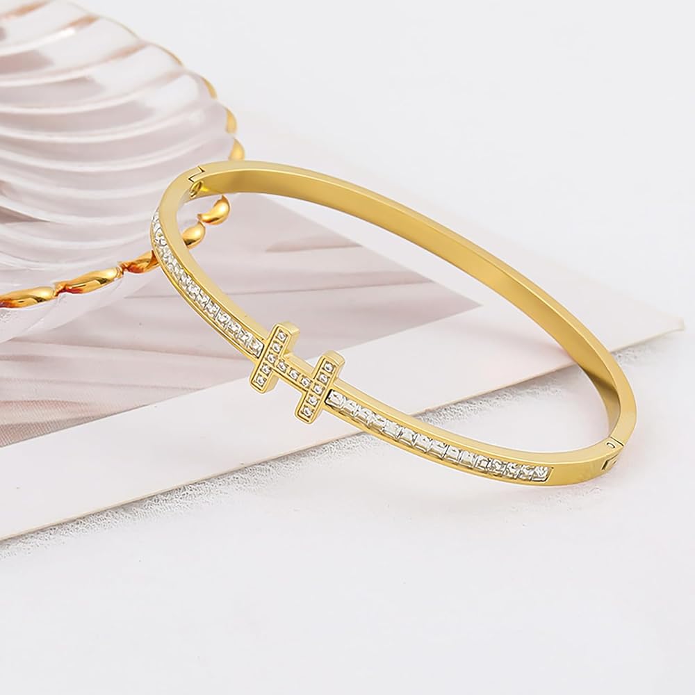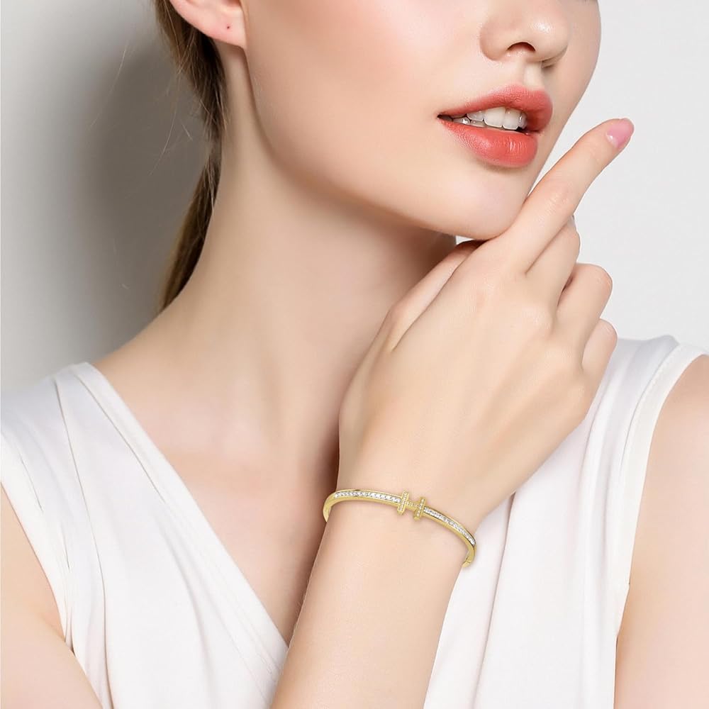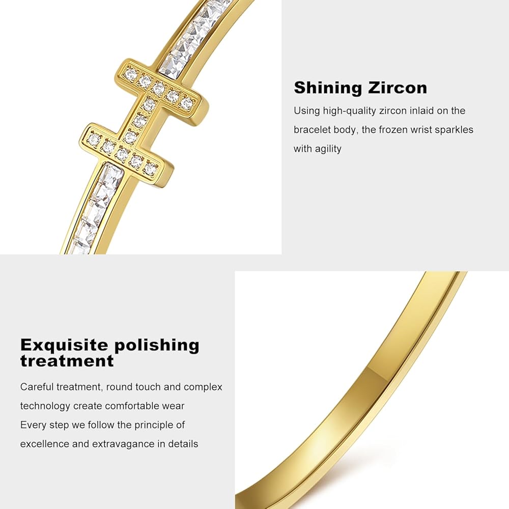 سوار مطلي بالذهب عيار 18 قيراط مرصع بالزركونيا المكعبة وحزام من الألماس للنساء