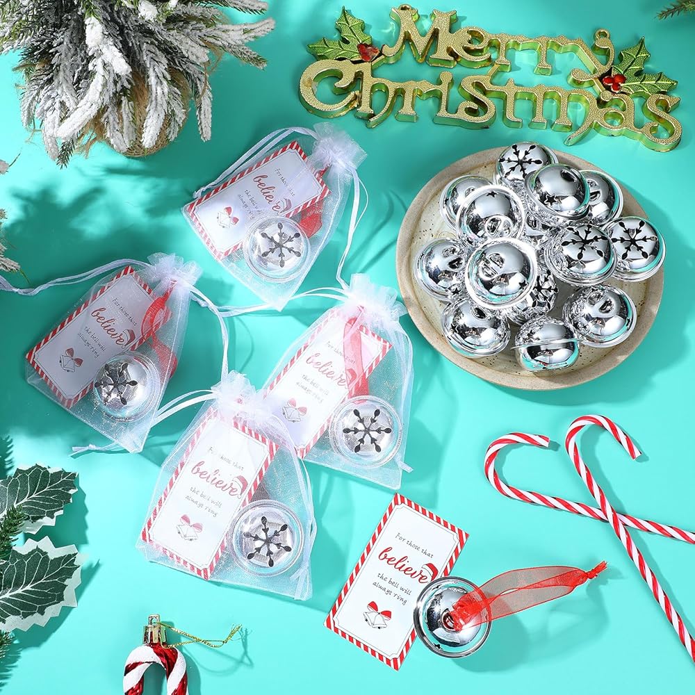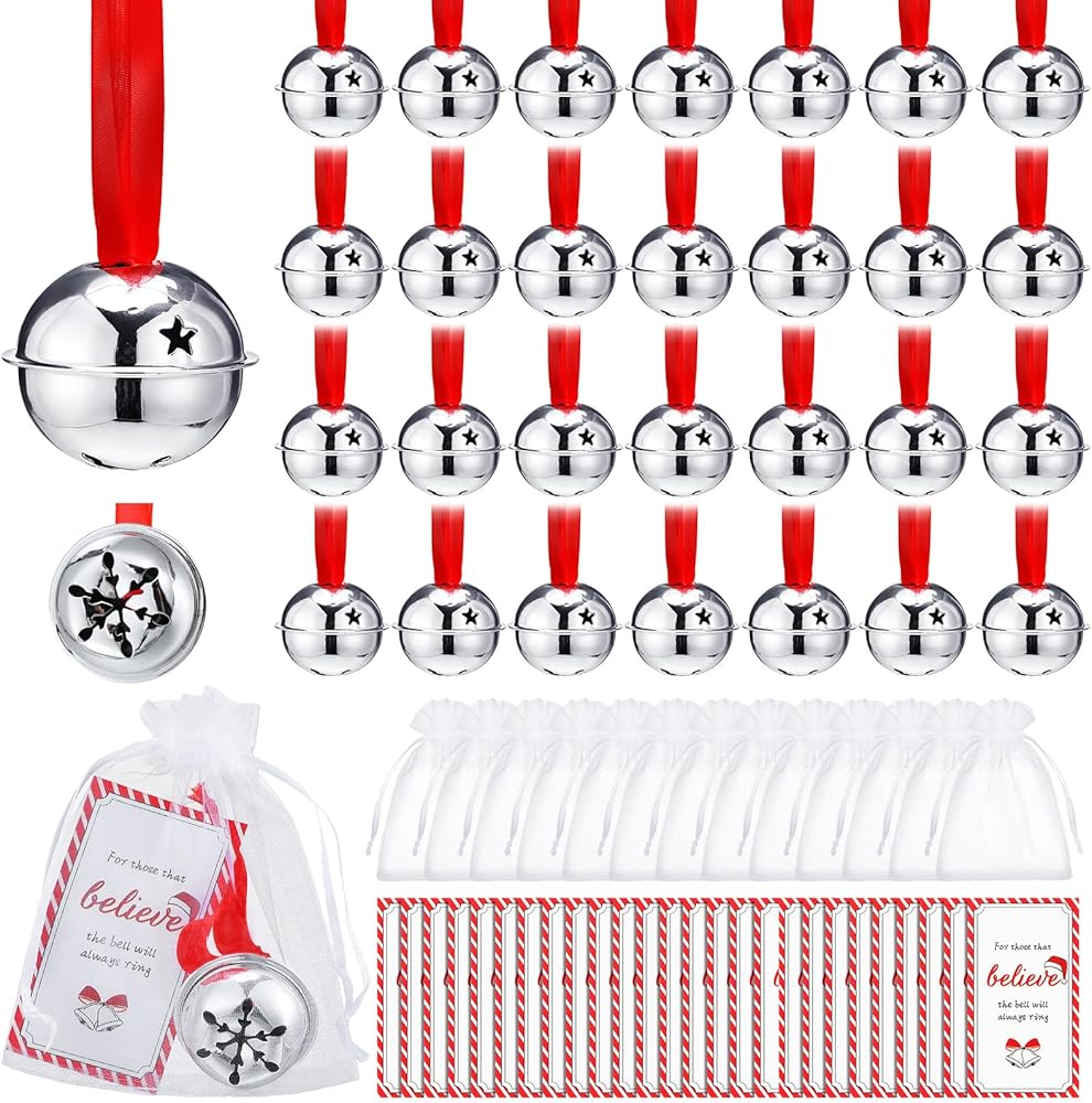 leitee 30 جهاز كمبيوتر شخصى عيد الميلاد صدق جرس الحلي الفضة مزلقة الرنة جرس السائبة سانتا هدية جرس جلجل جرس عيد الميلاد حزب تفضل لشجرة عيد الميلاد ديكور المنزل مع أكياس بطاقة الشريط الأورجانزا