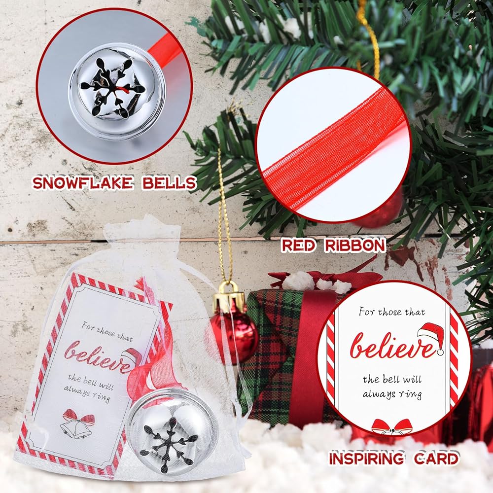 Aesthetic Appeal with Attention to Detail: our Christmas bells come in a classic color that can easily blend with any type of decoration; Each is designed with exquisite detail, featuring silver snowflake bells adorned with attractive red silk ribbons and festive gift tags for added charm