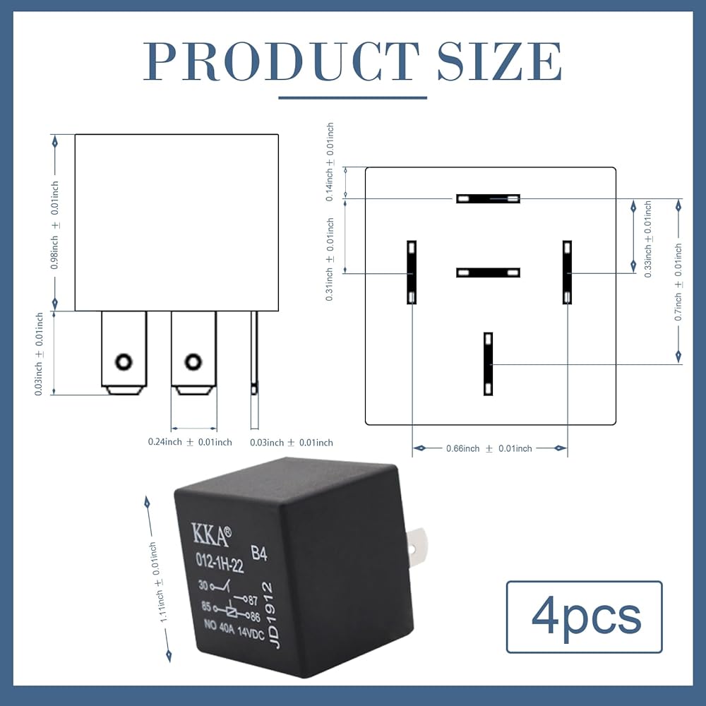 Product List: The package includes 4 x relays, which meet your daily use and replacement needs. Contact type is 1Z/1H. Contact load 40A/13.5VDC, 20A/27VDC.