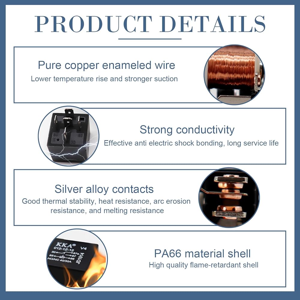 Advanced Material: The relay shell is made of PA66 material, which is durable, moisture-proof, and has good stability. Using silver alloy contacts, good thermal stability, can withstand high temperature work, pure copper enameled wire has lower temperature rise and stronger suction. Small size and high power.