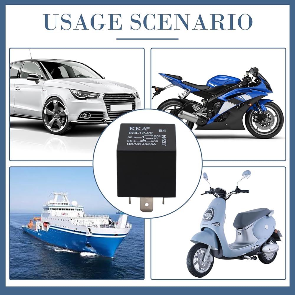 Wide Application: This relay is suitable for most cars, such as car lights, wipers, starter, air conditioner, power seats, power windows, shifting and brakes, sound control relay. At the same time, it is also widely used in automatic control, electric power, communication, traffic signal and other fields. In these fields, 5-pin relays are used to control and protect circuits, realize time control, etc.