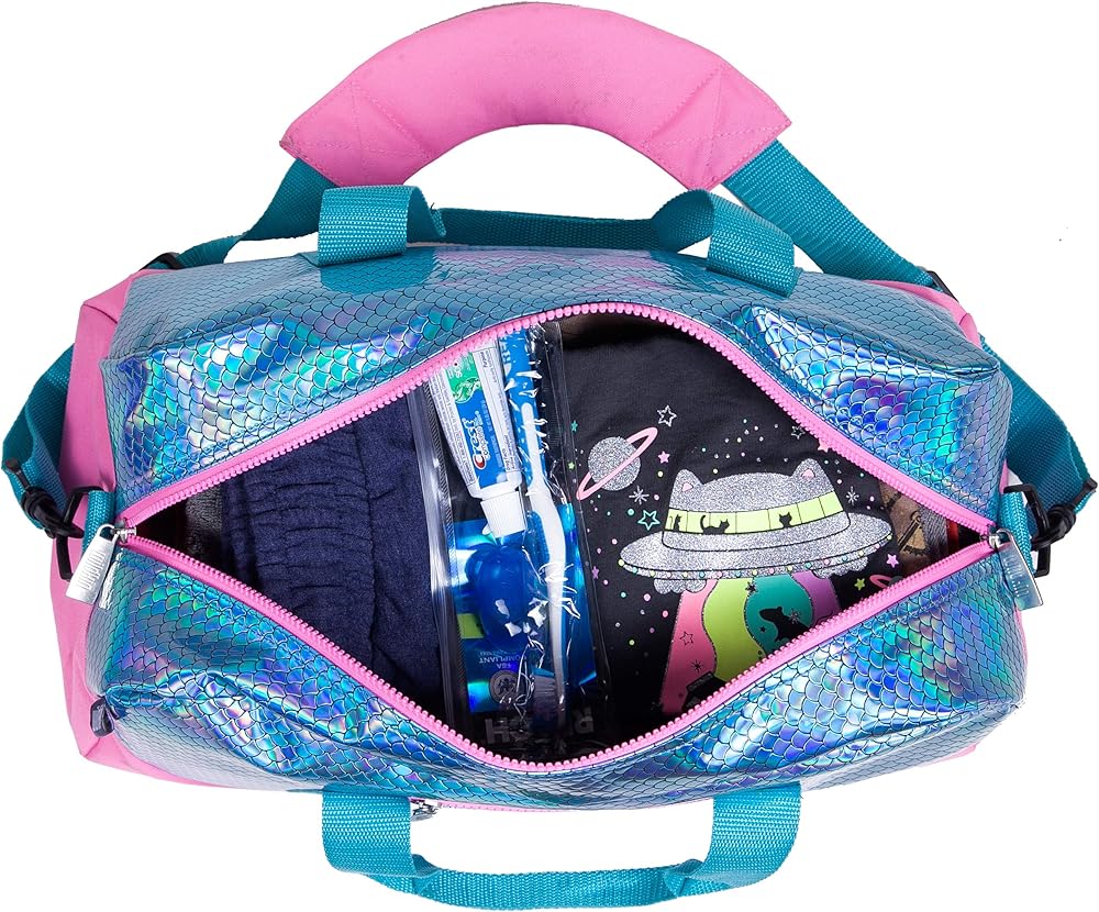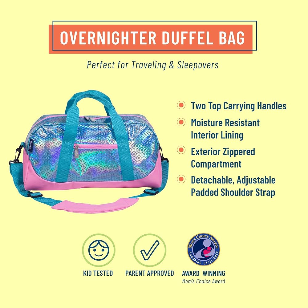 حقيبة Wildkin Overnighter Duffel ولعبة مطابقة الذاكرة للفتيات (72 قطعة) الحزمة: إطلاق العنان للمغامرات الذهنية - احزمها والعب من أجل متعة لا حدود لها (مقاييس حورية البحر)