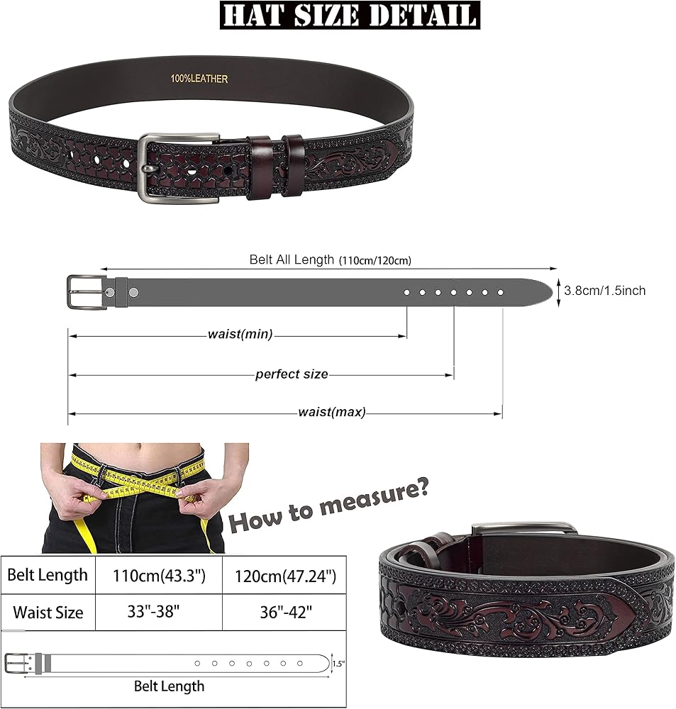 جودة عالية: هذه الأحزمة الغربية الكلاسيكية للرجال والنساء مصنوعة من جلد البقر المحبب بالكامل. كل أحزمة جلدية غربية من رعاة البقر مصنوعة بعناية وحرفية واجتازت رقابة صارمة على الجودة.