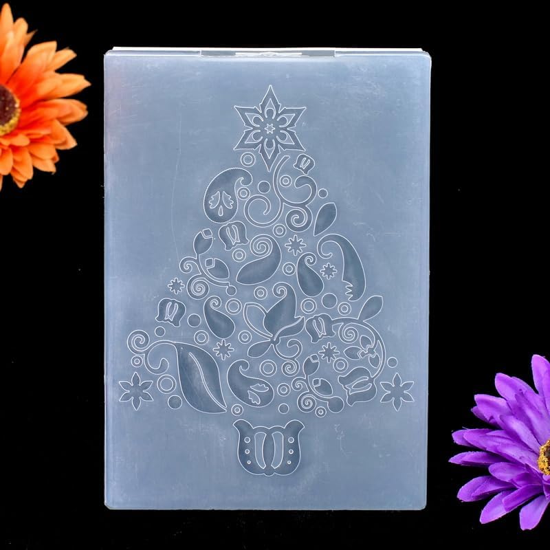 DDOUJOY شجرة عيد الميلاد المرحة والزهور وأوراق الشجر وخلفية النجوم ومجلدات النقش البلاستيكية لصنع البطاقات وسجلات القصاصات والحرف الورقية الأخرى 2101039