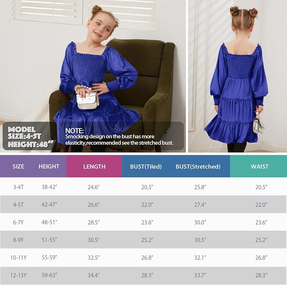 - فساتين بأكمام طويلة تناسب الشتاء والخريف والربيع؛ مناسبة لأعياد الميلاد والهالوين والمدرسة وحفلات أعياد الميلاد
