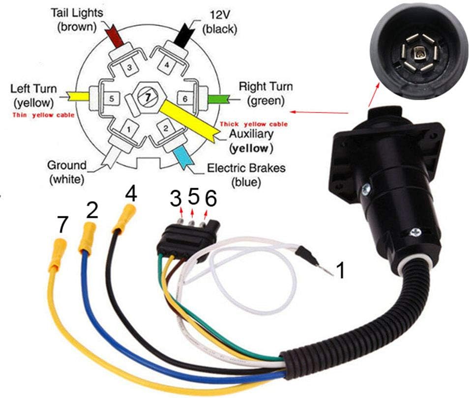 4 أسلاك مسطحة إلى 7 اتجاهات RV Trailer Light Plug سلك محول محول لوصلة مقطورة شاحنة السيارة مع دعامة تثبيت مقبس الموصل، من LIYYOO