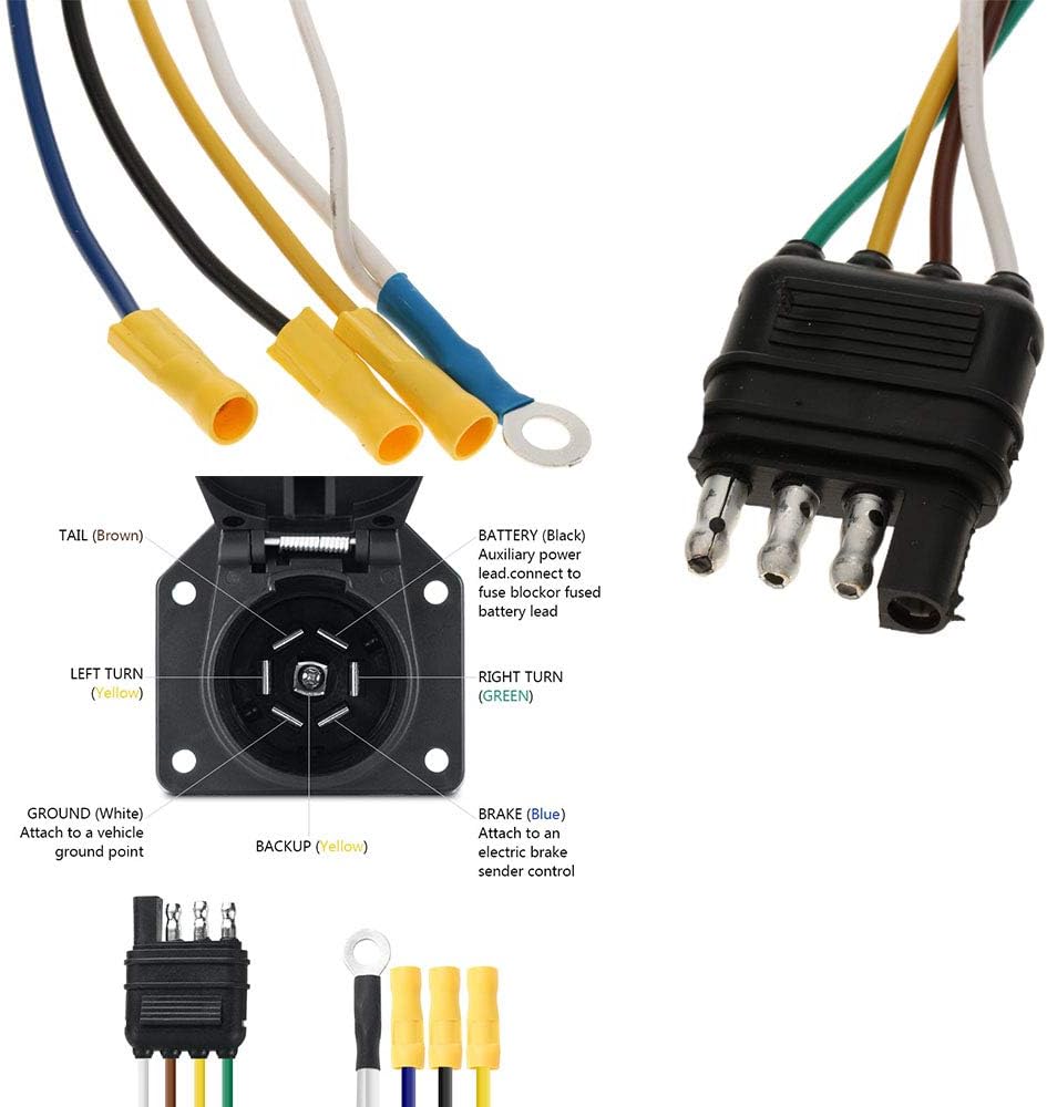 ★تطبيق واسع - مناسب لمعظم المقطورات وشبه المقطورات والقوافل والمركبات الترفيهية. يُستخدم بشكل شائع مع موصلات T أو محولات المصابيح الخلفية مع وصلات نهاية السيارة المسطحة بأربعة اتجاهات