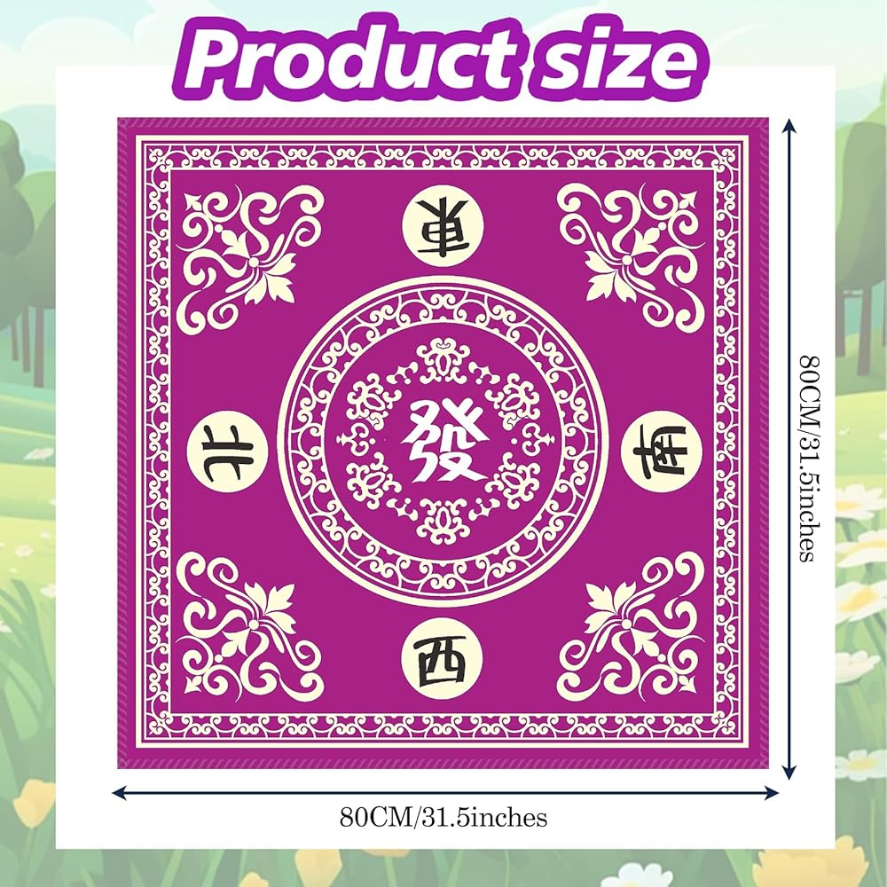 حصيرة ماجونج: مقاس غطاء طاولة حصيرة ماجونج 31.5 بوصة طول × 31.5 بوصة عرض (80 سم × 80 سم)، وهو مثالي للعب ألعاب البلاط على سطح الطاولة مثل الماجونج والدومينو