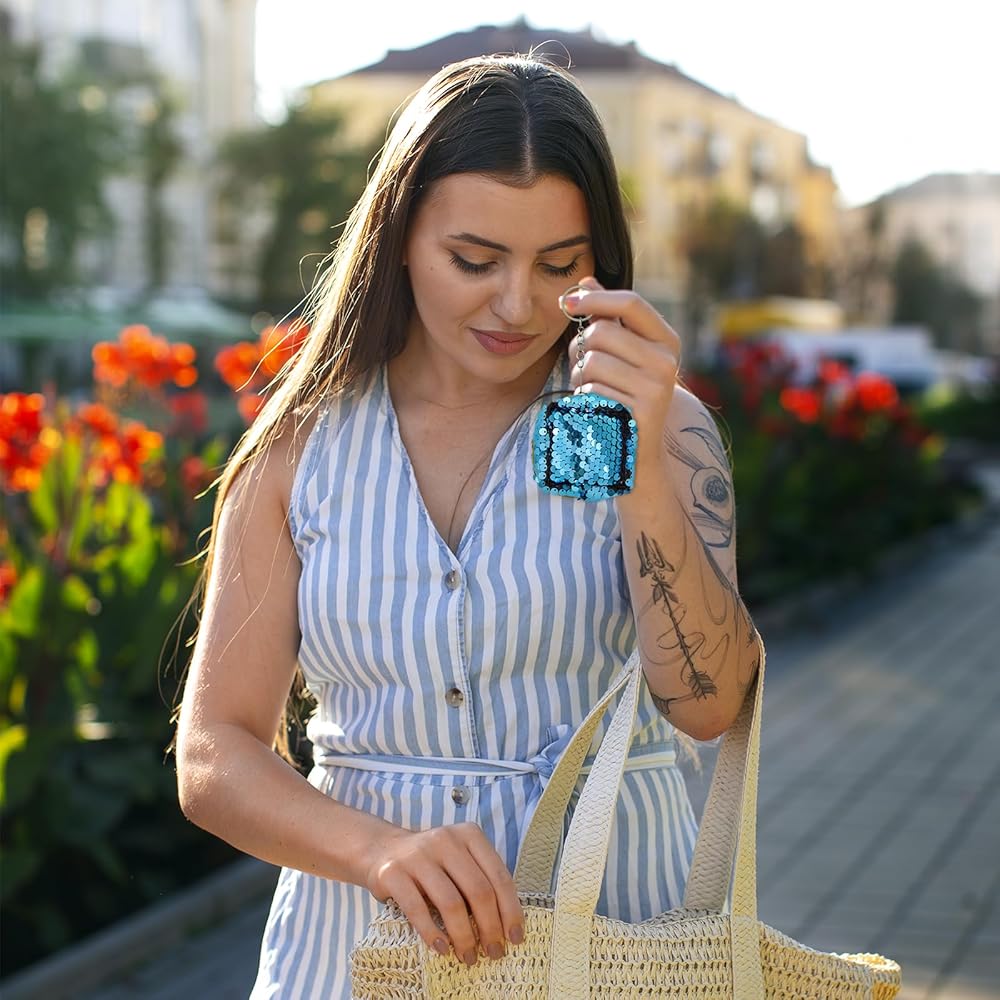 السعة: محفظة العملات المعدنية المُزينة بالترتر هي حقيبة تنظيم صغيرة للعملات المعدنية والتغيير والمفاتيح وسماعات الرأس وغيرها من الأشياء الصغيرة. علقها على سلسلة مفاتيحك أو حقيبتك كسحر، مريح وعصري