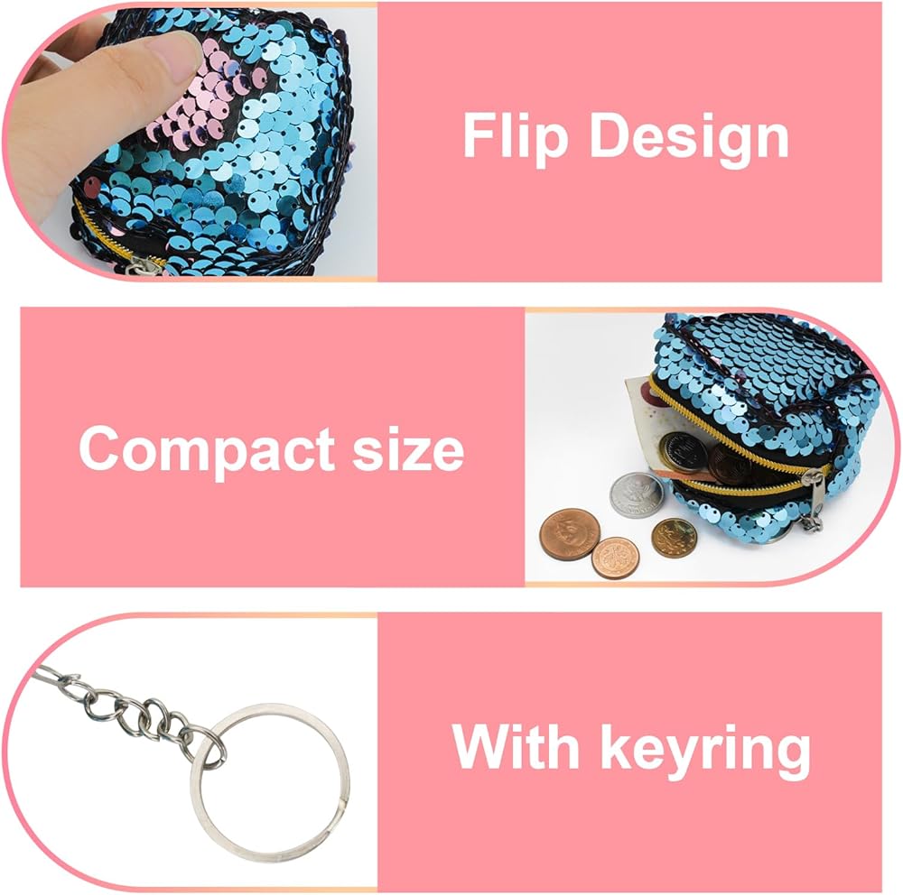 محفظة عملات معدنية بالترتر: محفظة العملات المعدنية الصغيرة للنساء ذات وجهين، إذا عبثت بالترتر، فسوف تظهر ألوانًا مختلفة، تحت ضوء الشمس أو الضوء، وسوف تتألق، وهو جميل وساحر