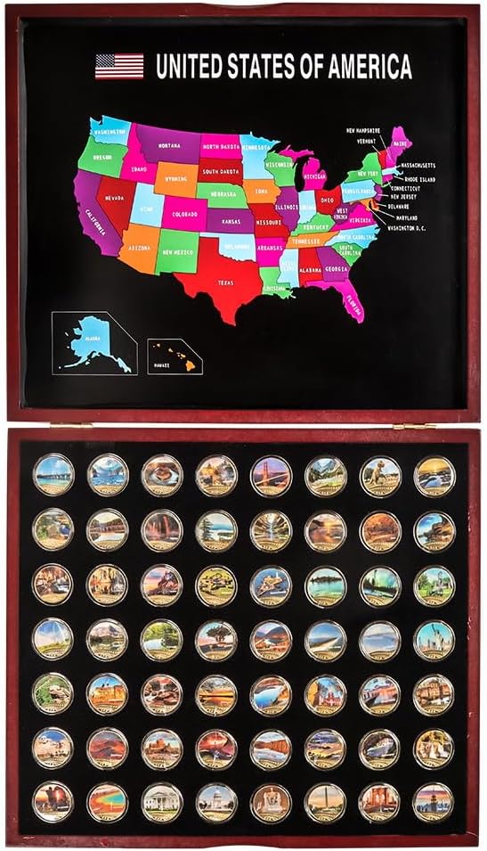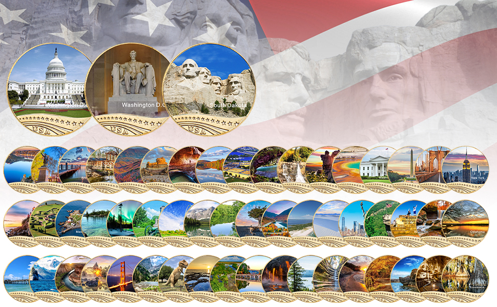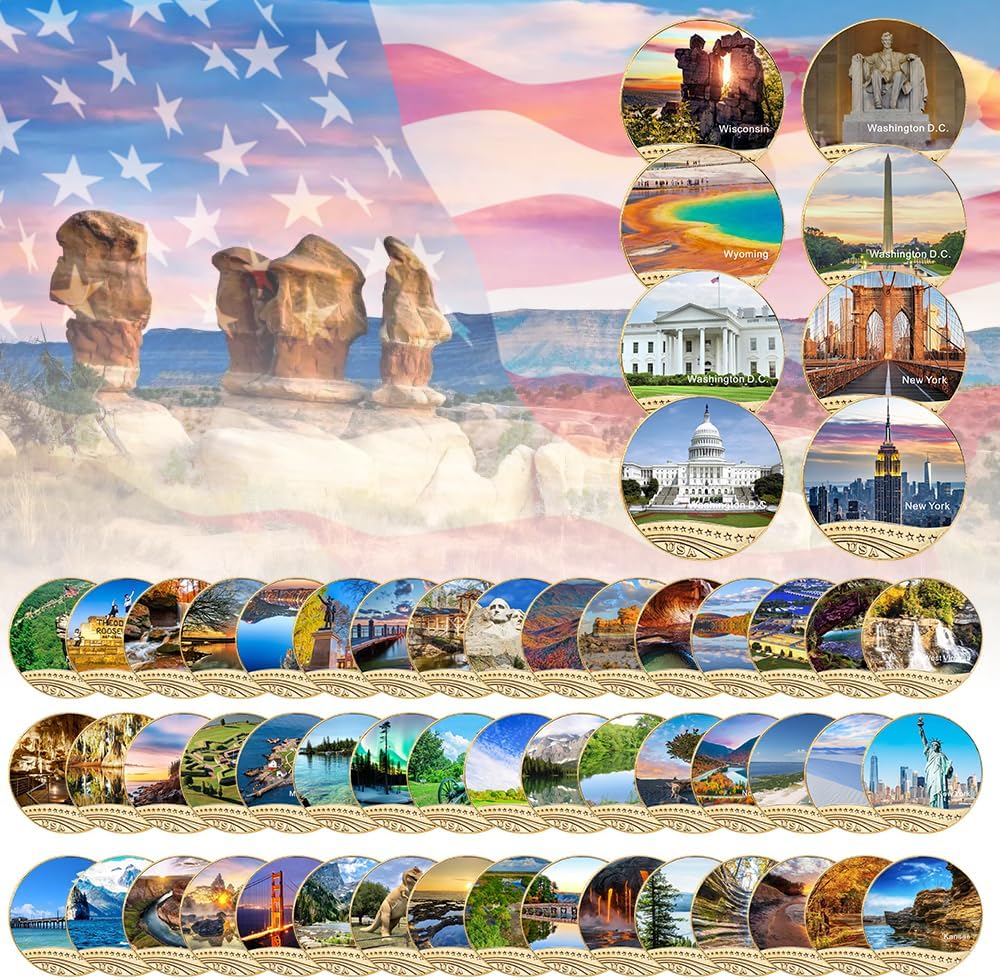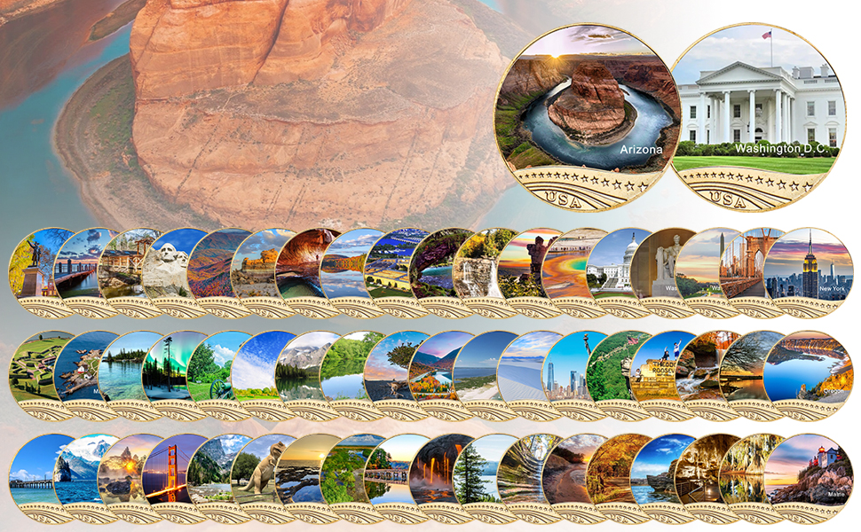 - هذه المجموعة الكاملة من العملات التذكارية للمتنزهات الوطنية الشهيرة والمناظر الطبيعية الخلابة في 56 ولاية