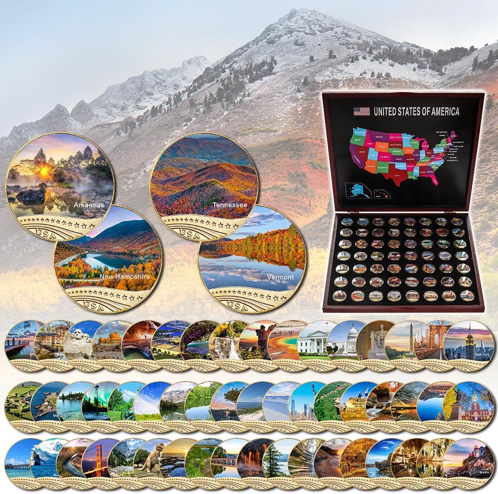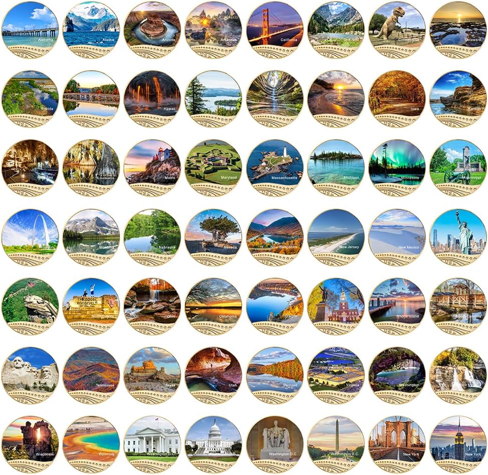 56 قطعة من المتنزهات الوطنية الشهيرة في الولايات المتحدة والمواقع ذات المناظر الطبيعية الخلابة مجموعات العملات المعدنية التذكارية لعيد الميلاد للرجال