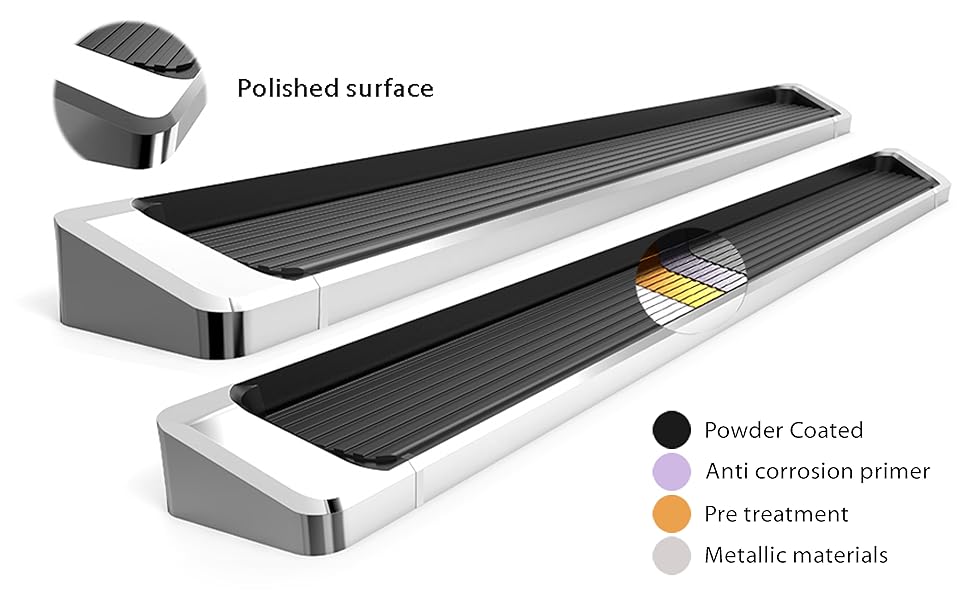 Heavy Duty 6-inch Wide Running Boards with Raised Ends that Act as Mud Guards