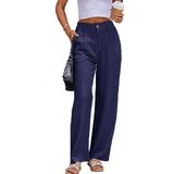 Dress linen pants with buttons zipper closure, pleated front, high waist, nice for formal events work office business and casual everyday vacation beach wear, dress up and down trousers for summer