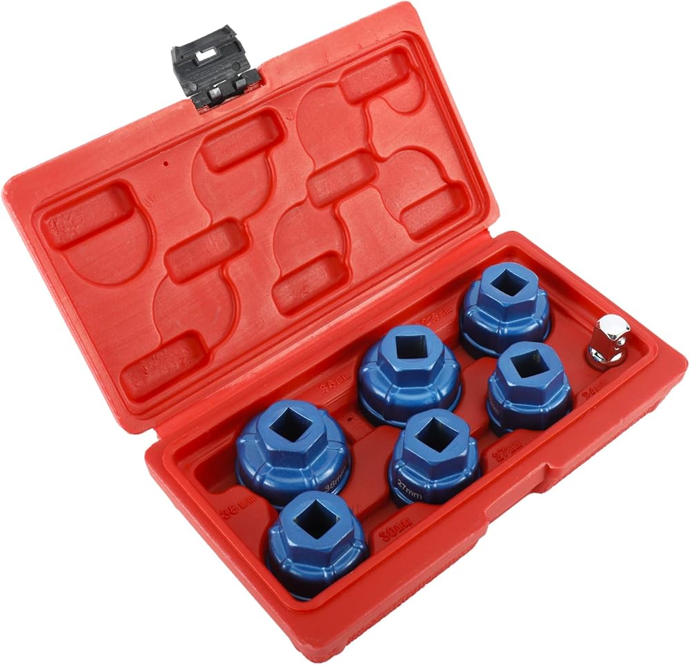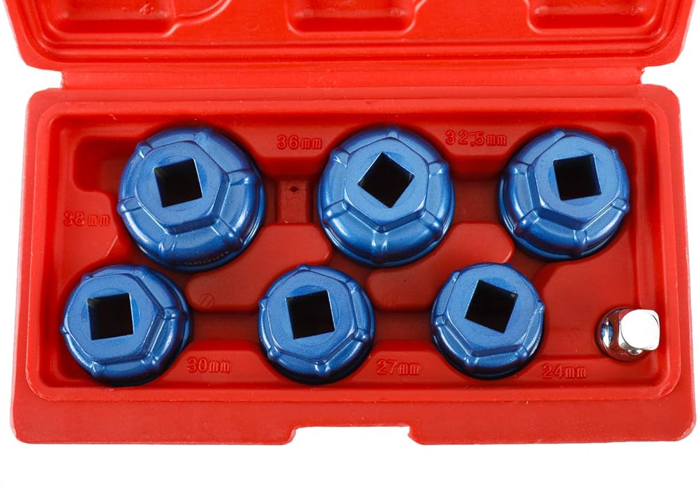 • Package Includes– 6pcs Oil filter caps: 24mm, 27mm, 30mm, 32.5mm, 36mm, 38mm; 1pc adaptor:1/2" to 3/8"; 1pc durable carry case