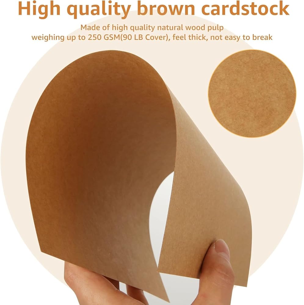 Thick Brown Cardstock: The brown cardstock 8.5 X 11 owns a heavy weight of 250 GSM(90 LB) which allows it sturdy and has thick feelings and is not easy to break