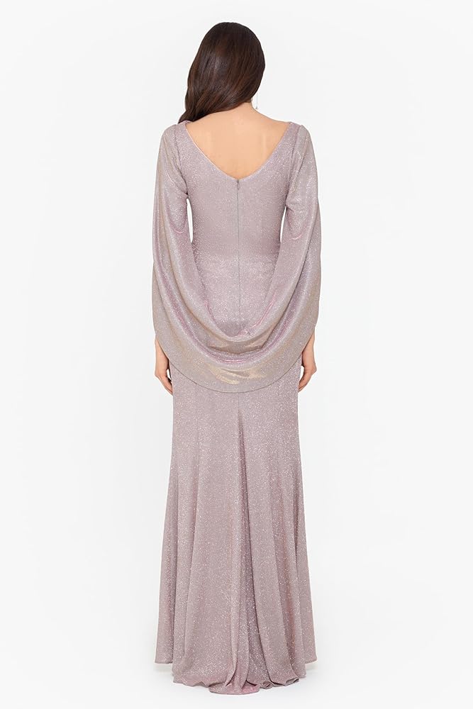Step into the spotlight with our Long Glitter Cape Sleeve Gown, a masterpiece of elegance and sophistication. This dress is crafted from high-quality glitter fabric, designed to catch the light and dazzle with every movement. The draped neckline adds a refined touch, while the unique cape sleeves offer a dramatic flair that sets this gown apart from the rest. The hidden back zipper ensures a seamless look and easy dressing. Flowing to a maxi length, this gown creates a graceful and elongated silhouette, perfect for weddings, galas, and other formal occasions. Its fully-lined construction provides comfort and ensures a smooth fit, allowing you to move with confidence and style. Embrace the blend of classic design and modern elegance with this stunning gown. Make a memorable entrance and shine at your next event with this exquisite piece.