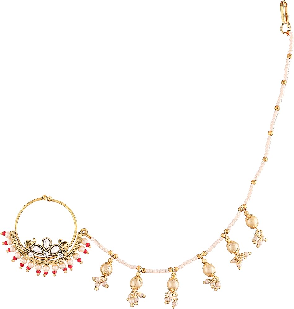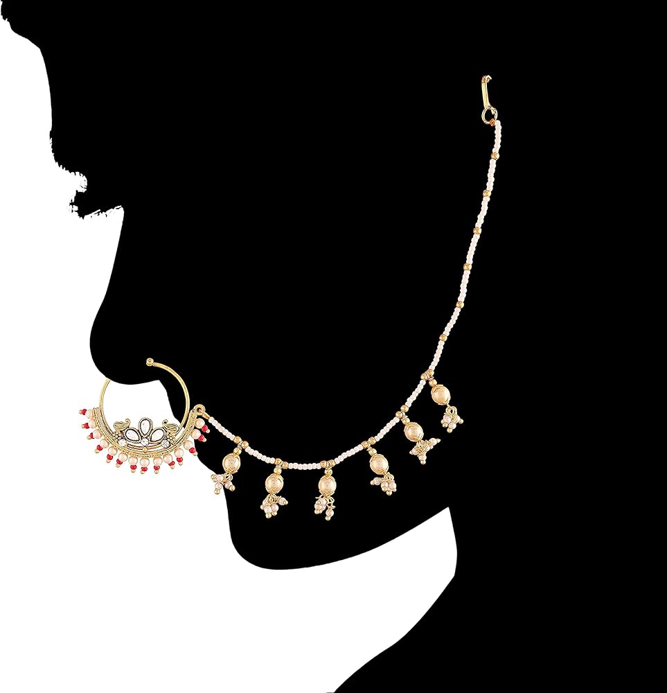 • ETHNIC LOOK - Featuring attractive designs, this nath (nose ring) can look elegant and stylish when worn with anarkali, lehengas, and sarees. You can see this Nath Design in many Bollywood movies.
