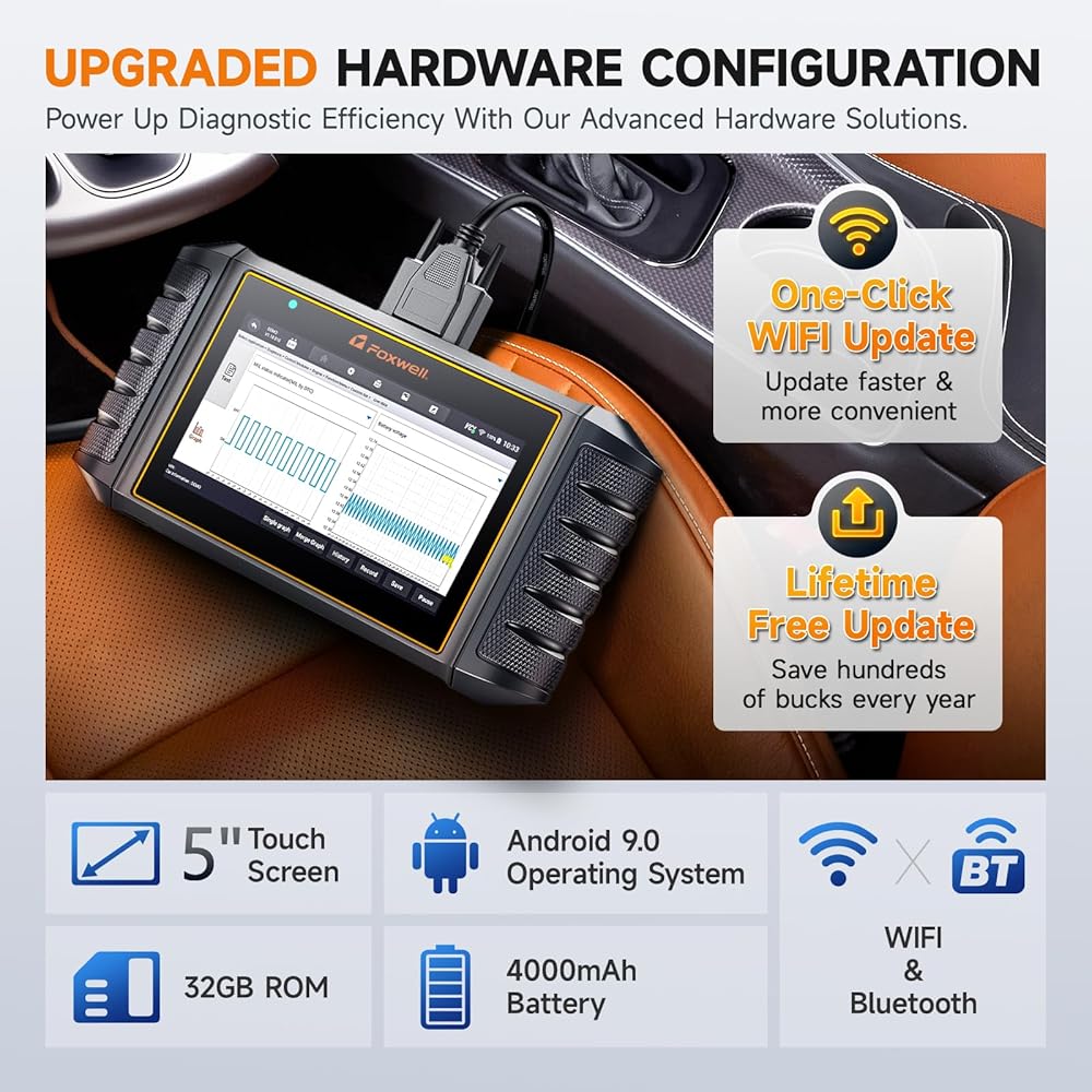 • تشغيل بنقرة واحدة + تحديث واي فاي مجاني مدى الحياة: يتميز قارئ السيارة Foxwell NT710 بشاشة لمس كبيرة مقاس 5.5 بوصة، ويدعم الماسح الضوئي التشخيصي NT710 نقرة واحدة للمسح السريع لجميع وحدات التحكم المتاحة، لاكتشاف رموز الأخطاء الحالية أو المحتملة في كل وحدة تحكم إلكترونية أنظمة. يمكن للمستخدمين بسهولة التقاط لقطات شاشة للبيانات التشخيصية في أي وقت بنقرة واحدة فقط. والأكثر من ذلك، أنه يدعم تحديثات البرامج بنقرة واحدة عبر شبكة WiFi، مما يزيل مشكلات السرعة البطيئة عند الاتصال بجهاز كمبيوتر للحصول على التحديثات.