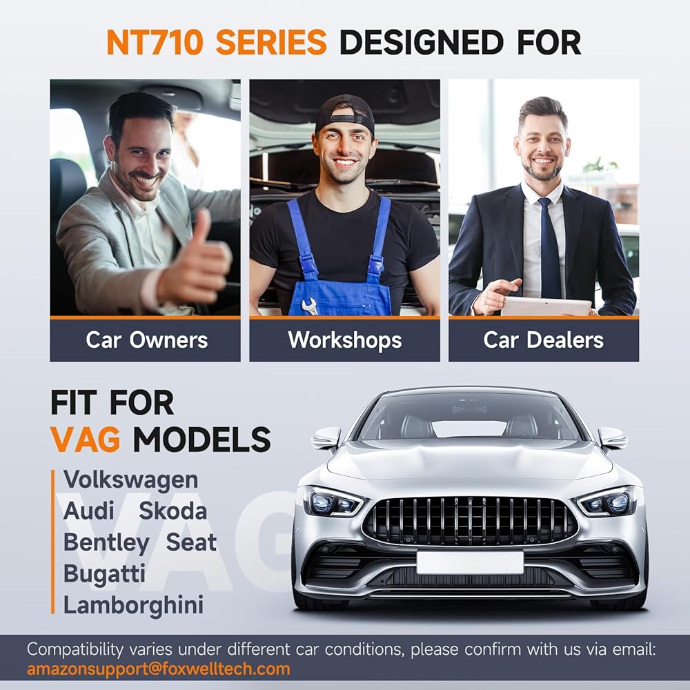 FOXWELL NT710 مناسب لأداة المسح الضوئي Audi VW، ماسح ضوئي OBD2 كامل النظام ثنائي الاتجاه مناسب لمقعد Volkswagen Skoda VAG، وظيفة إرشادية، تسجيل البطارية، قارئ رمز ABS الخانق EPB بالكامل