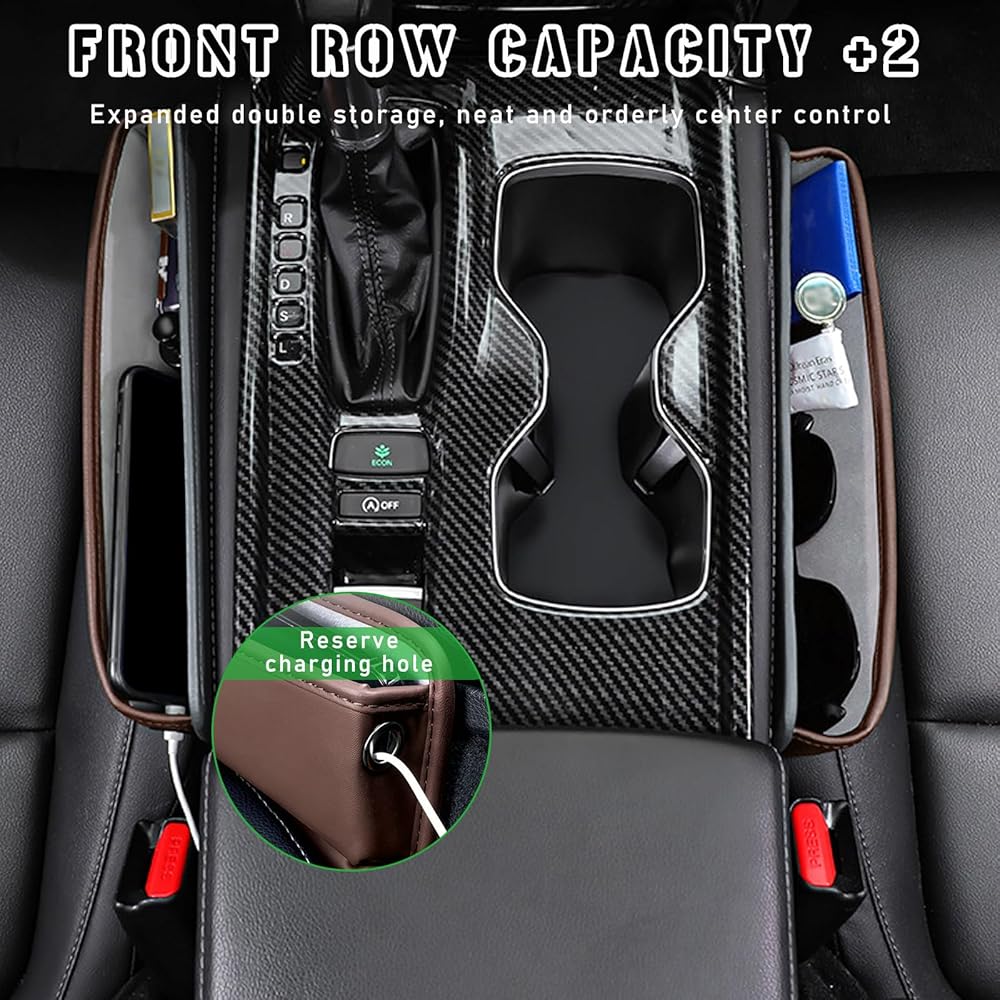 • 【Charging Hole】: Automotive gap organizer is designed with a special hole for inserting the phone charging cable. It is convenient for you to pass your charging cable through the storage box, so as to charge your mobile phone in your car.