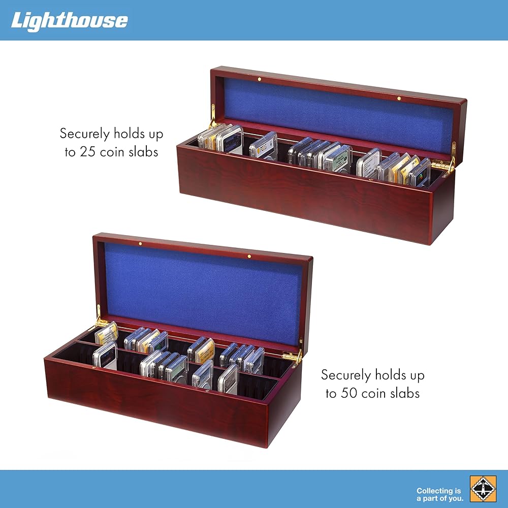 HOLDS ANY COIN SLAB: Each track is sized to accommodate a wide variety of common (and even many uncommon) graded coin slab varieties. PCGS, NGC, ANACS, ICG, CAC, and more can all comfortably and securely fit in the tracks of the Lighthouse Multi-Slab Box.
