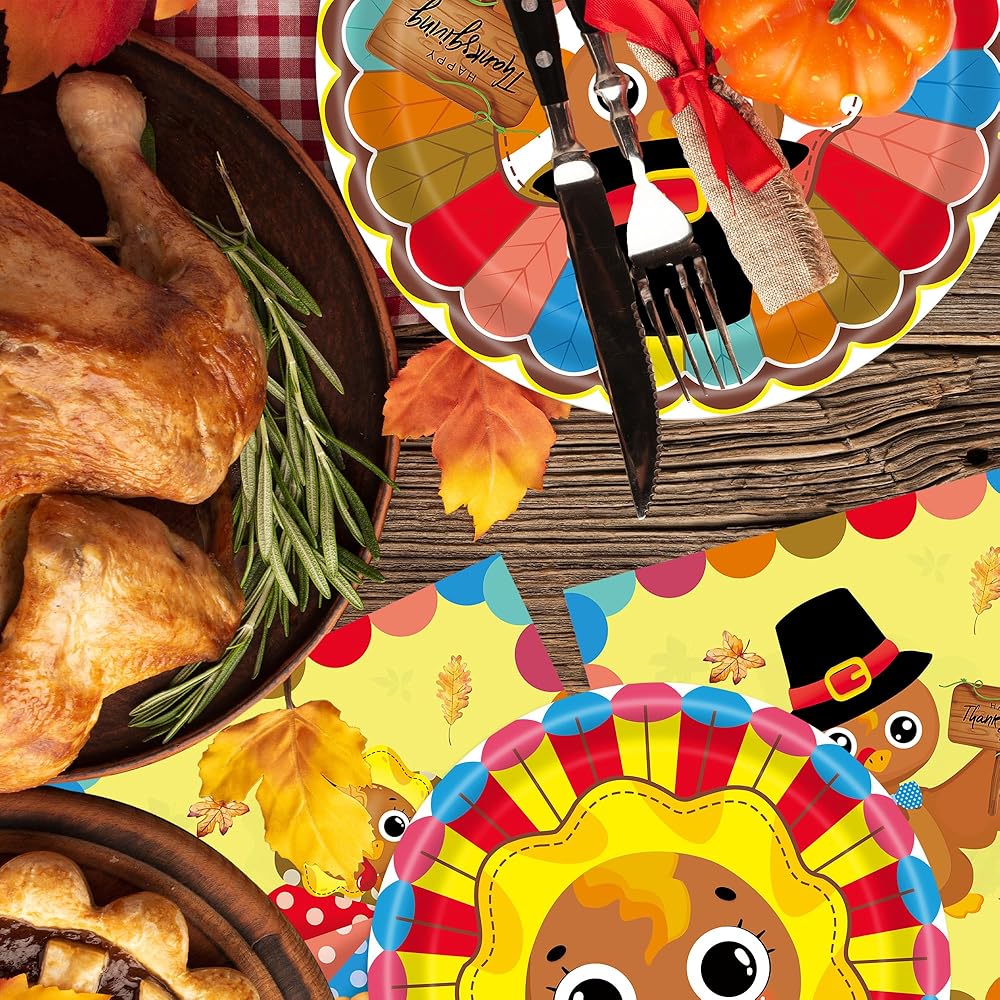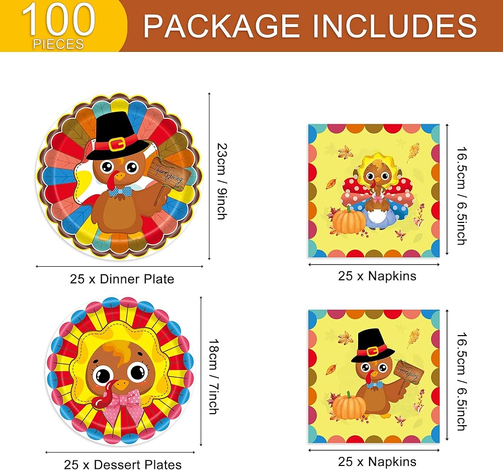 تشمل العبوة: 50 قطعة من أطباق الديك الرومي لعيد الشكر و50 قطعة من المناشف الورقية بأوراق الخريف لمستلزمات حفلات عيد الشكر