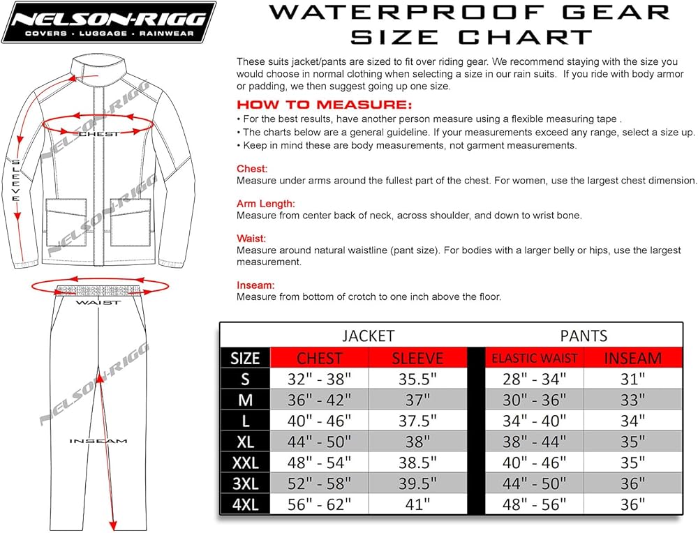 • Two-piece 100% waterproof motorcycle rain suit