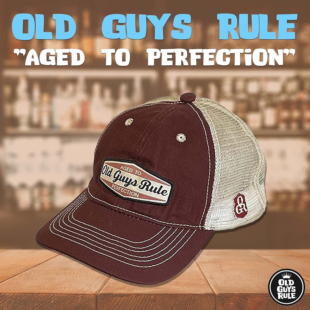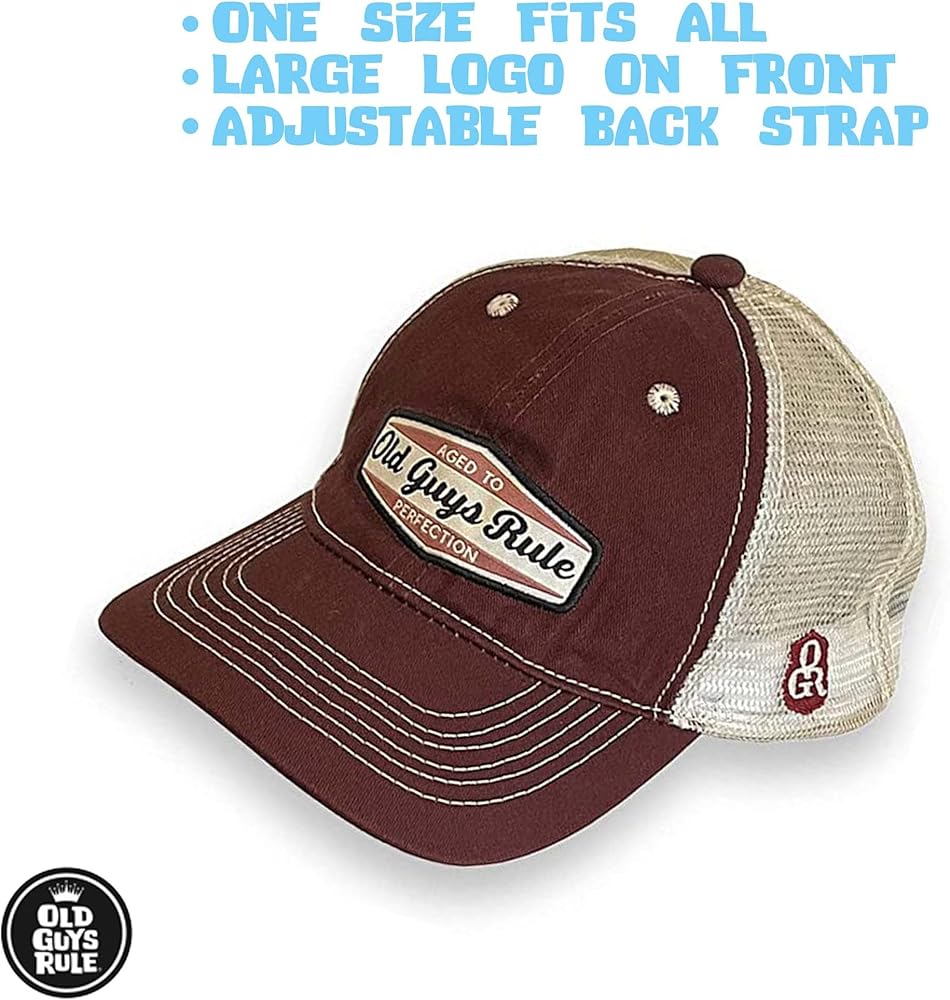 قبعة سائقي الشاحنات الرجالية من OLD GUYS RULE، تتراوح أعمارهم بين الكمال - هدية للأب والجد والزوج وعيد الأب وعيد الميلاد والعطلات - قبعة مبتكرة مضحكة للتقدم في السن والتقاعد وهواة جمع OGR (النبيذ والعاج)
