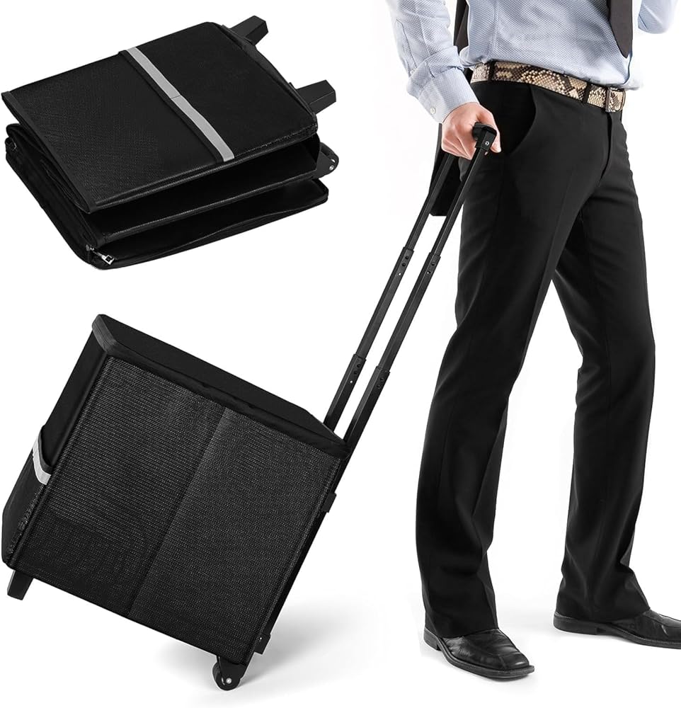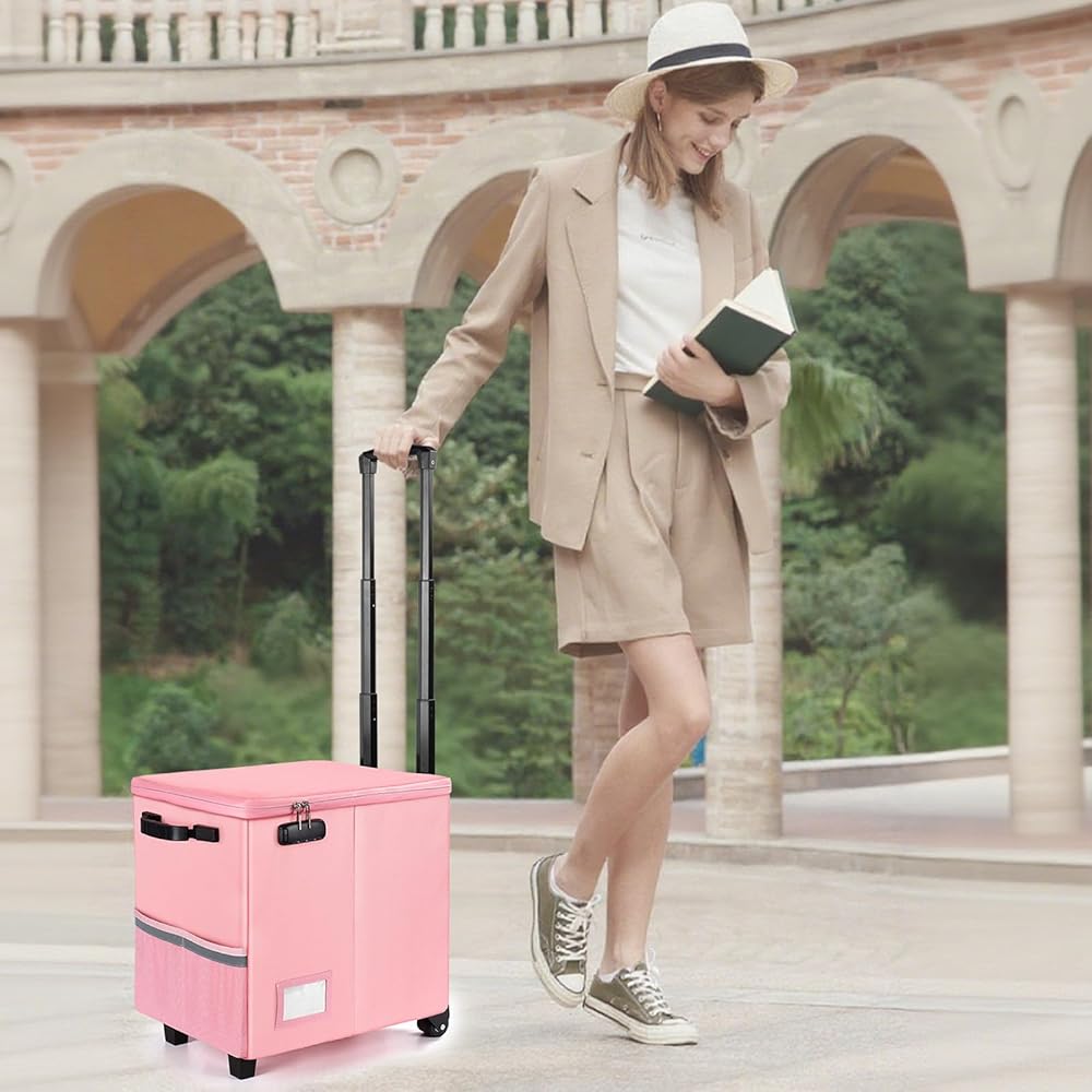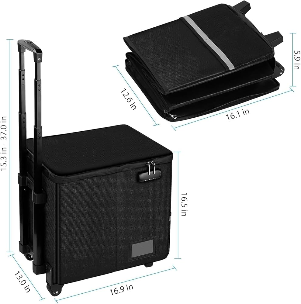 【تصميم إنساني】حقيبة دوارة في المنتجات المكتبية، مقبض تلسكوبي معدني قوي مقاوم للحريق، سحابات ناعمة، متعدد الطبقات/جيوب. يمكن طي صندوق التخزين المضاد للحريق بسهولة عند عدم الاستخدام، مما يساعدك على توفير المساحة. يمكنك وضعه في منزلك، مكتبك، سيارتك، إلخ. تسمح لك الجيوب الجانبية وفتحات الملصقات بتخزين العناصر الصغيرة والملصقات؛ الجزء السفلي عبارة عن بكرات مزدوجة وإطار دعم مزدوج.