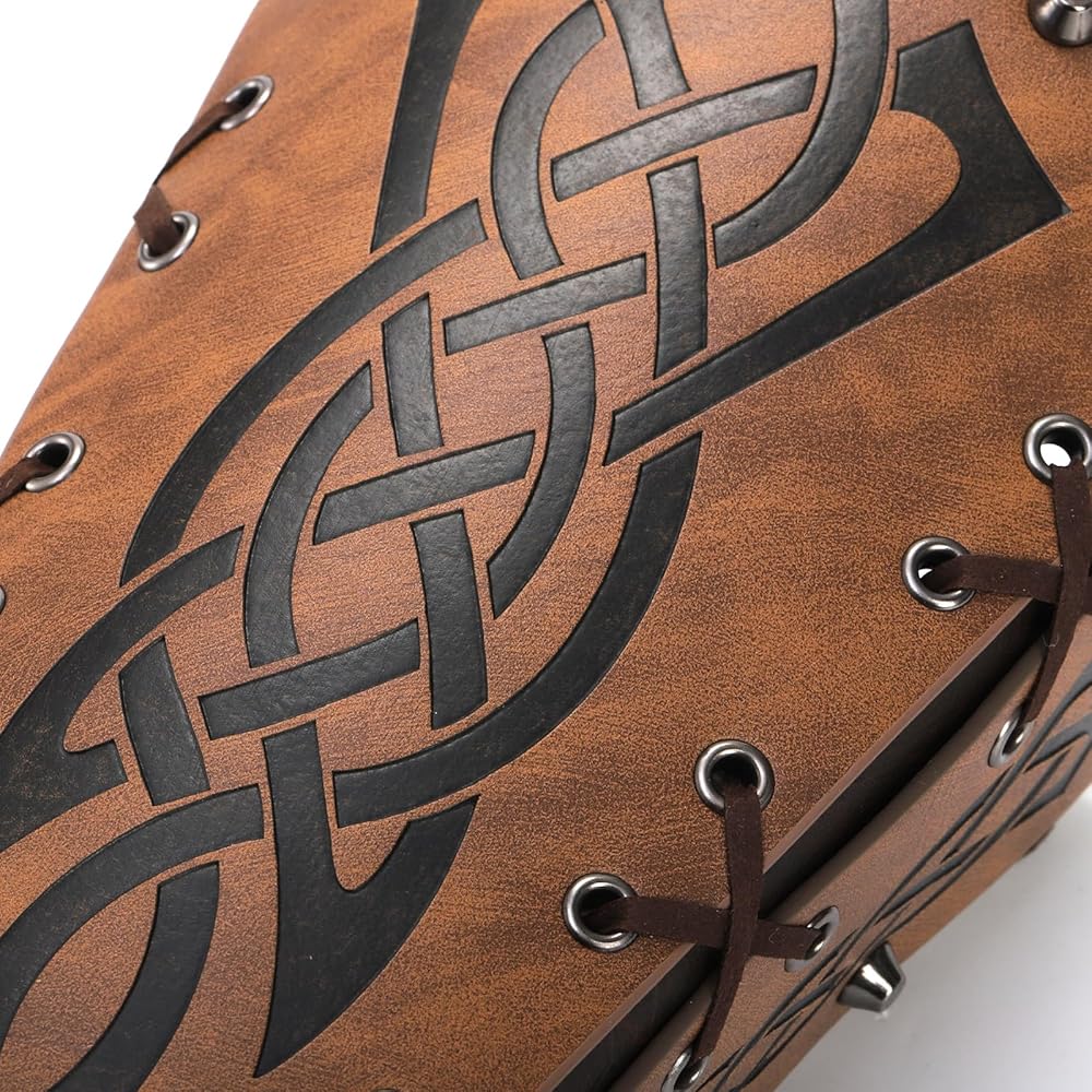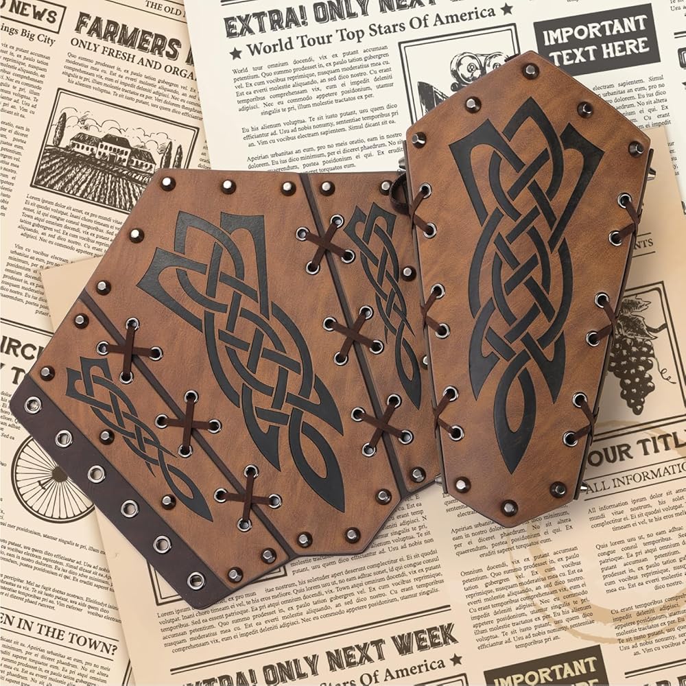 نمط فريد من نوعه من العصور الوسطى: تتميز أساور الدرع المصنوعة من الجلد الصناعي بنمط منقوش، يظهر نمط الفايكنج الكلاسيكي والغامض. وتخلق الأنماط والمنحوتات الدقيقة جوًا قويًا من العصور الوسطى، مما يعيد الناس إلى العصور الوسطى.
