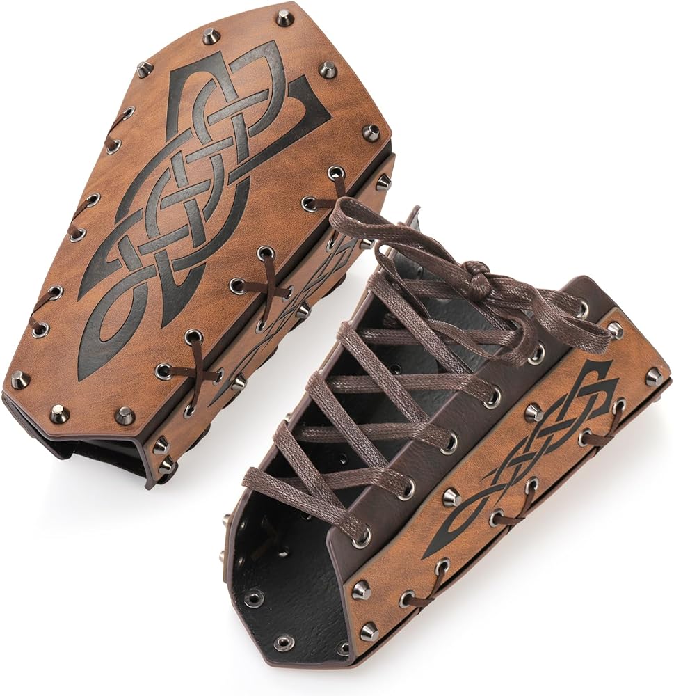 مقاس قابل للتعديل: مقاس دعامات الذراع من العصور الوسطى هذه 10.1 سم طول × 9.2 سم عرض، وهي مناسبة لمعظم أشكال الجسم. يمكنك تعديل أربطة الخيط لتناسب محيطات الذراع المختلفة، مما يمنحك تجربة ارتداء رائعة.