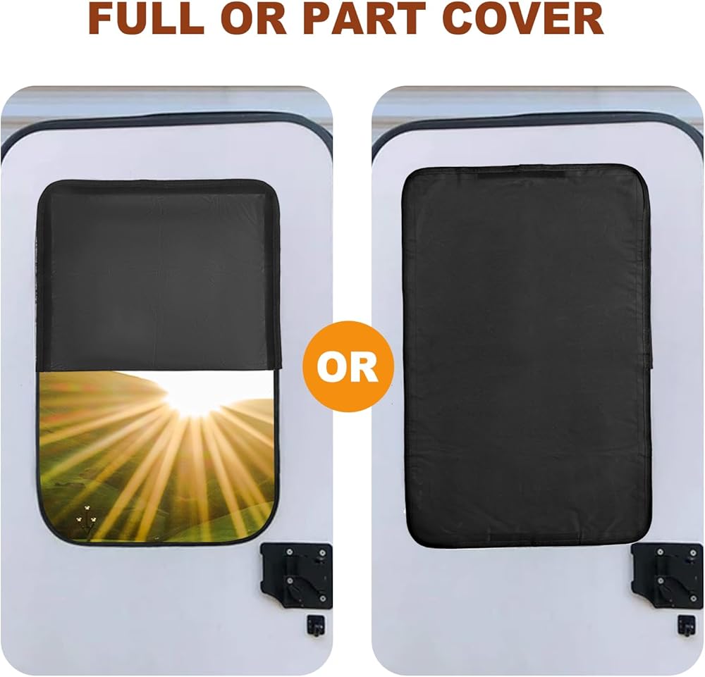 غطاء باب ونافذة RV - سهل التركيب - تعتيم الشمس وحماية الخصوصية لعربات التخييم 25 بوصة × 16 بوصة