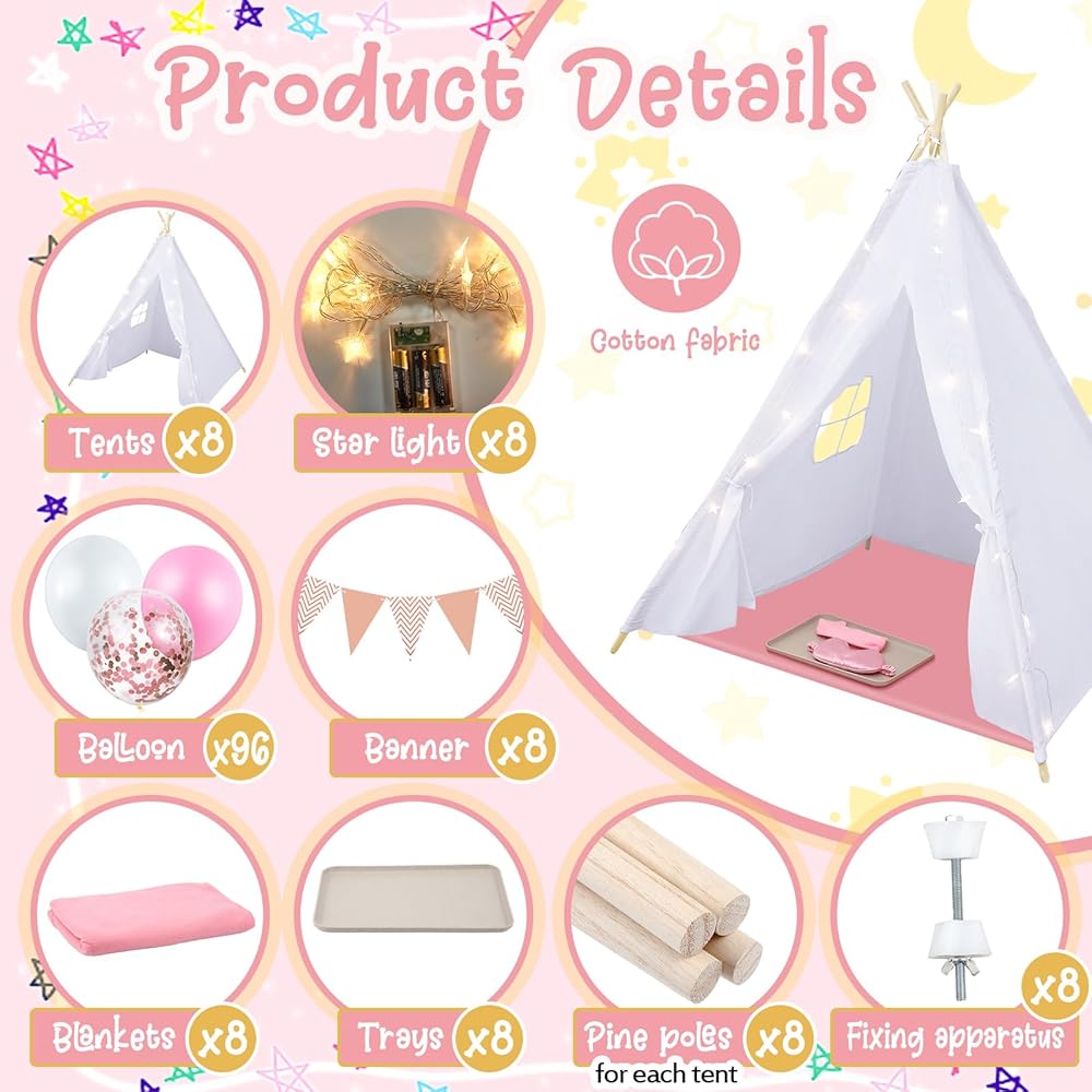 8 x Pink Teepees