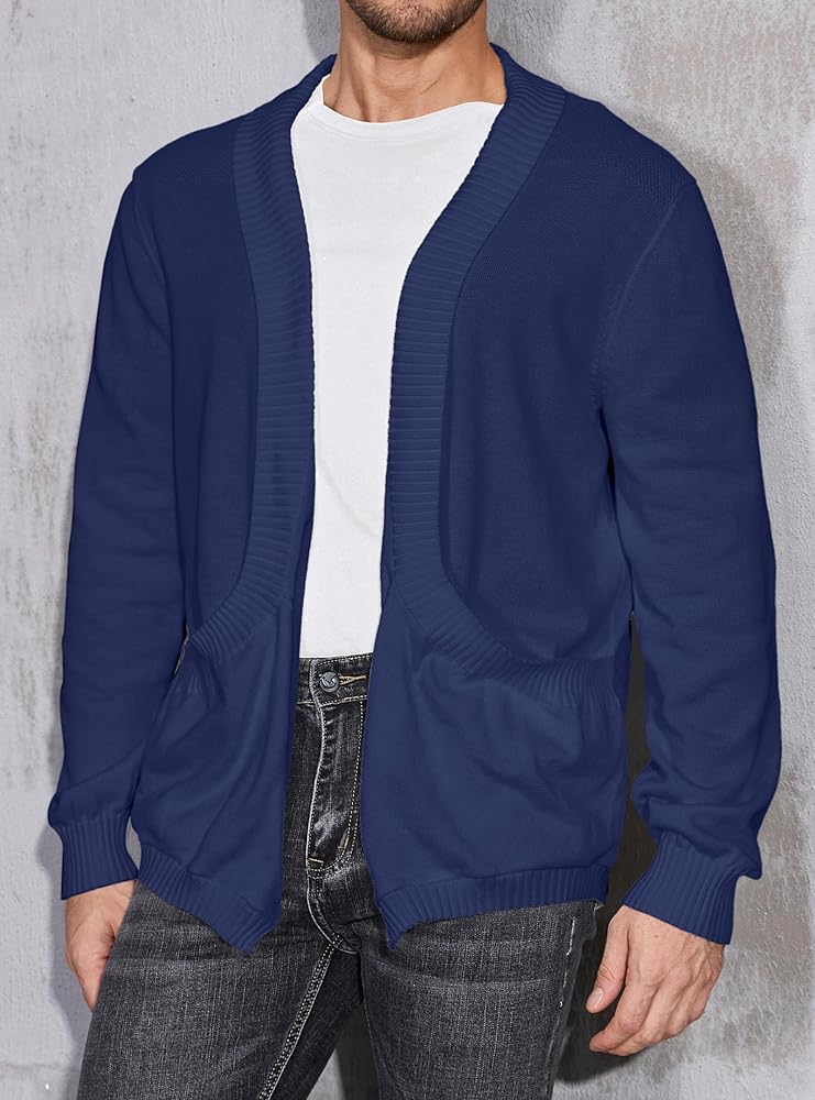 الميزات:قطعة خالدة تتميز بياقة كلاسيكية مطوية وتصميم مريح بدون أزرار لأناقة سهلة. جيبان أماميان واسعان يضيفان الأناقة والراحة