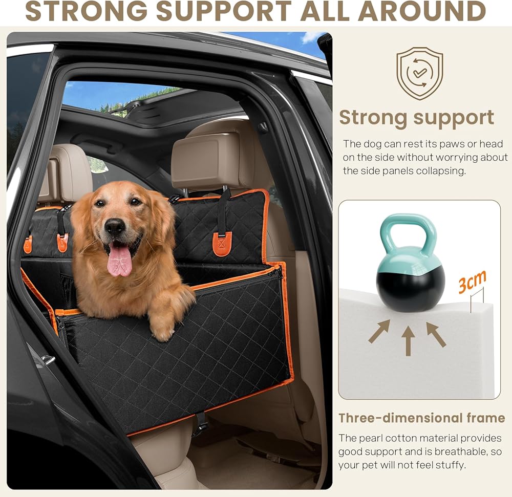 【غطاء مقعد سيارة للكلاب من بيكوت مملوء بـ 4 قطع من الإسفنج الموسع عالي الكثافة على 4 جوانب، اصنع الإطار بالكامل أكثر استقرارًا، يمكن للحيوانات الأليفة أن تتدلى أقدامها أو رؤوسها على الجانبين. لا مزيد من القلق بشأن انهيار الجوانب، فالأبواب الجانبية للسيارة محمية تمامًا، وتمنع حيواناتك الأليفة من فتح الباب عن طريق الخطأ أثناء حركة السيارة.