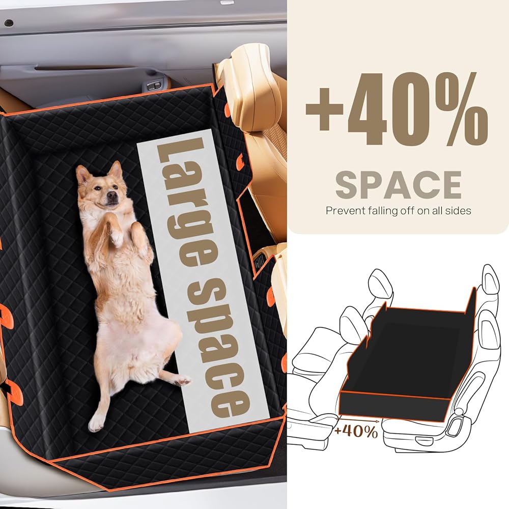 【𝐒𝐩𝐚𝐜𝐢𝐨𝐮𝐬 𝐃𝐨𝐠 𝐁𝐞𝐝】يبلغ حجم موسع المقعد الخلفي للكلاب 53.1x24.8 بوصة، ويمكن أن يغطي منطقة المقعد الخلفي بالكامل. يمنع صديقك المكسو بالفراء من الانزلاق إلى مساحة القدم عند الكبح بشكل حاد، مما يوفر أيضًا مساحة أكبر لكلبك للتحرك، مما يسمح له بالمشي أو تمديد أطرافه بسهولة.