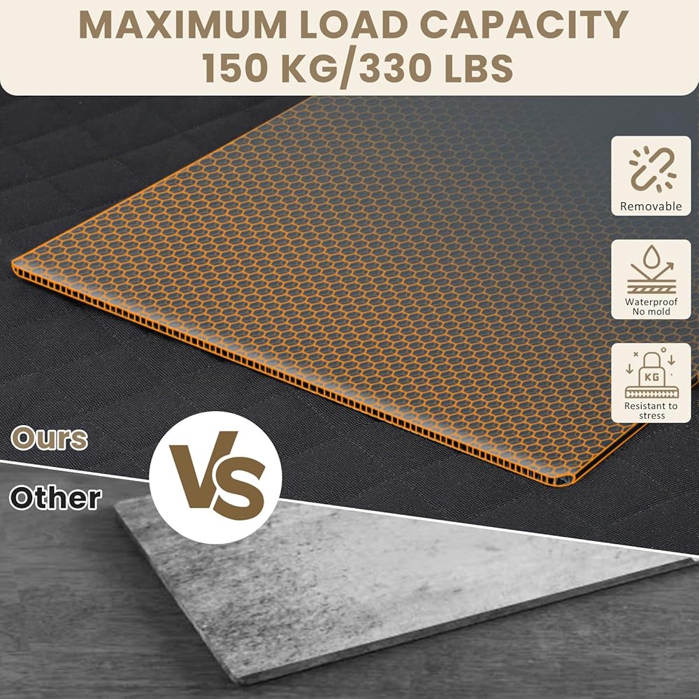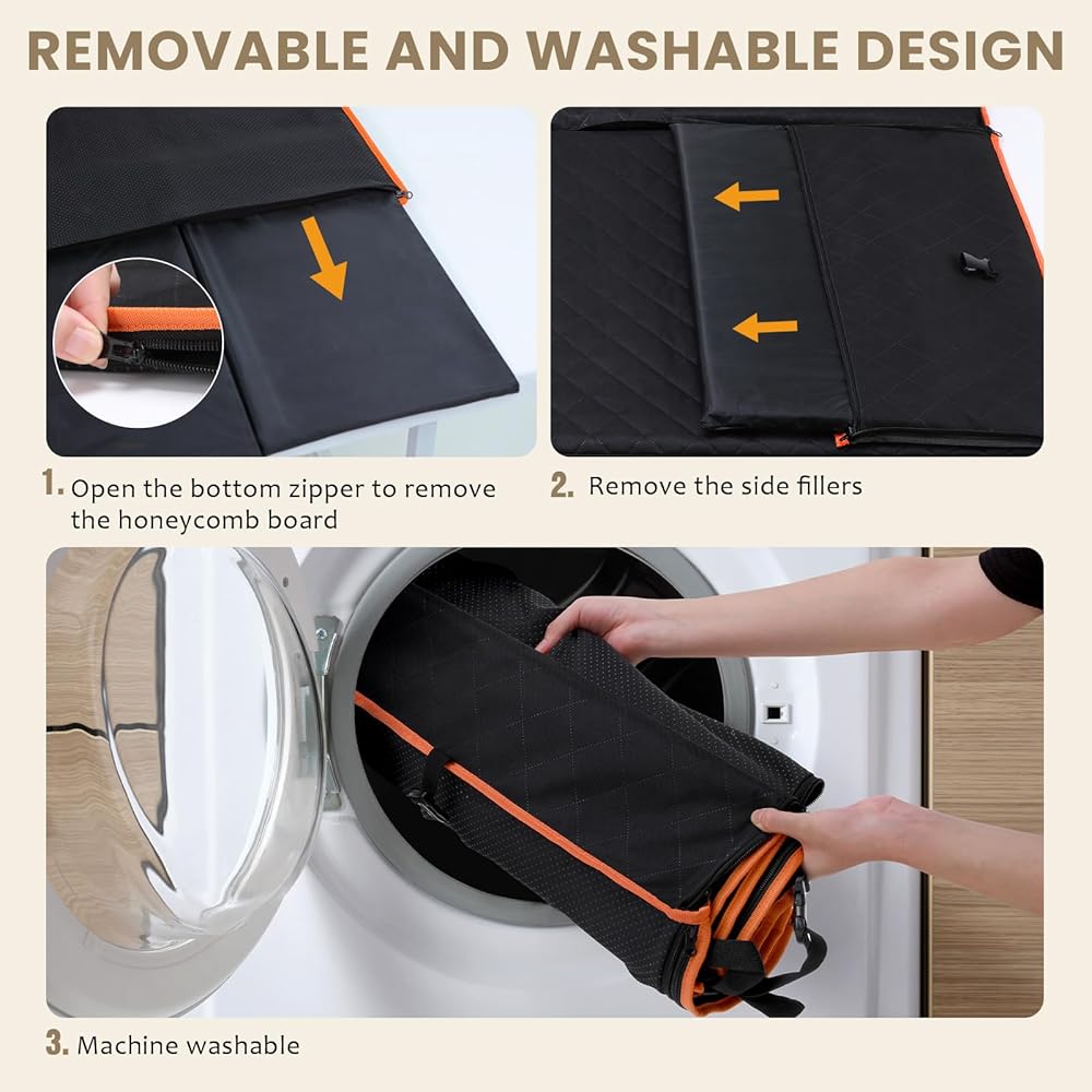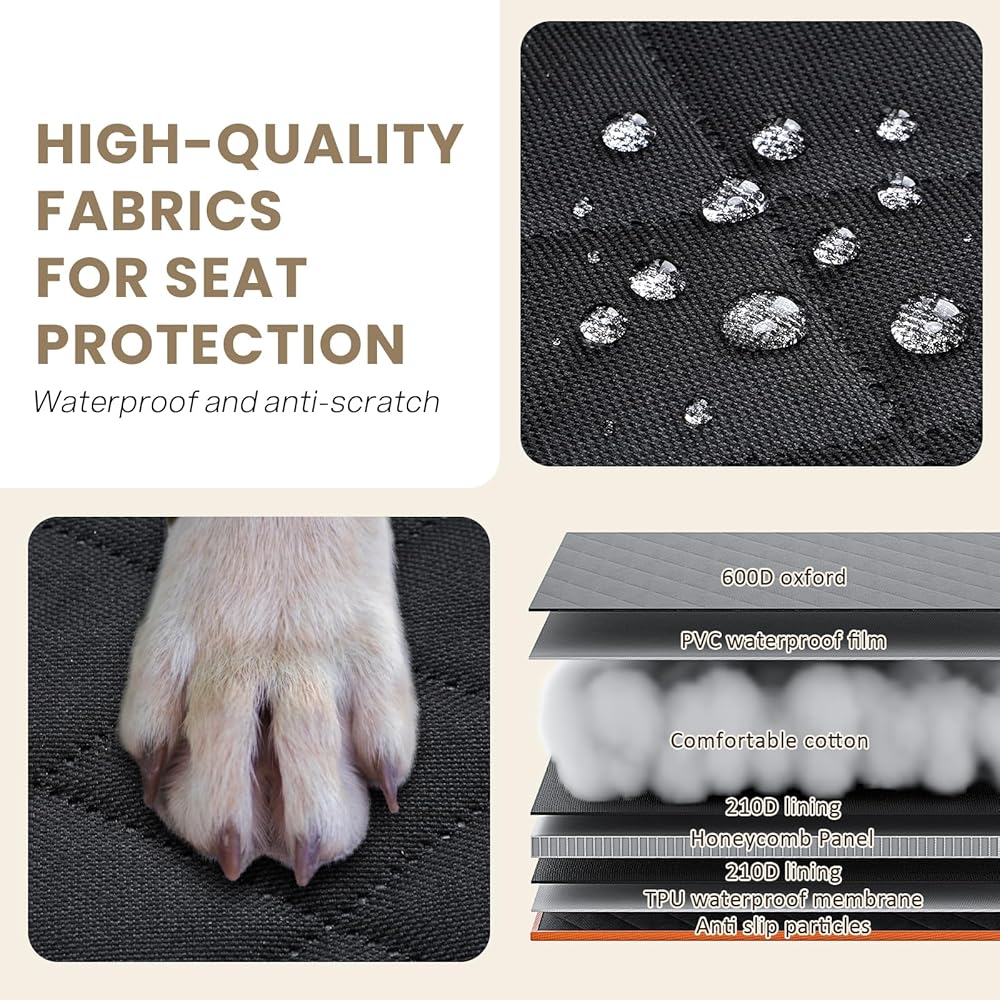 【غطاء مقعد السيارة ذو القاعدة الصلبة للكلاب مصنوع من ألواح قرص العسل القوية، أقوى بكثير وأقل عرضة للتشقق من تلك الألواح الخشبية، ويمكنه حمل ما يصل إلى 330 رطلاً ومناسب للكلاب الكبيرة أو الكلاب المتعددة.
