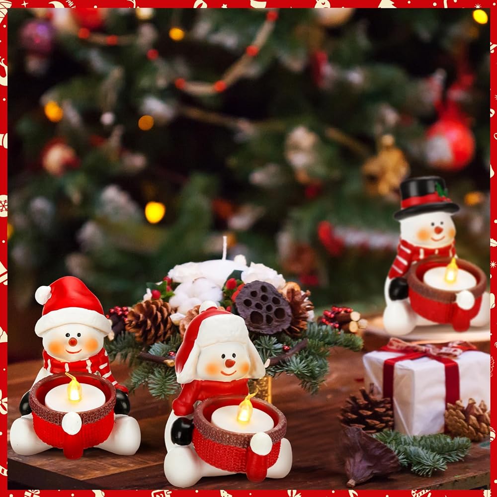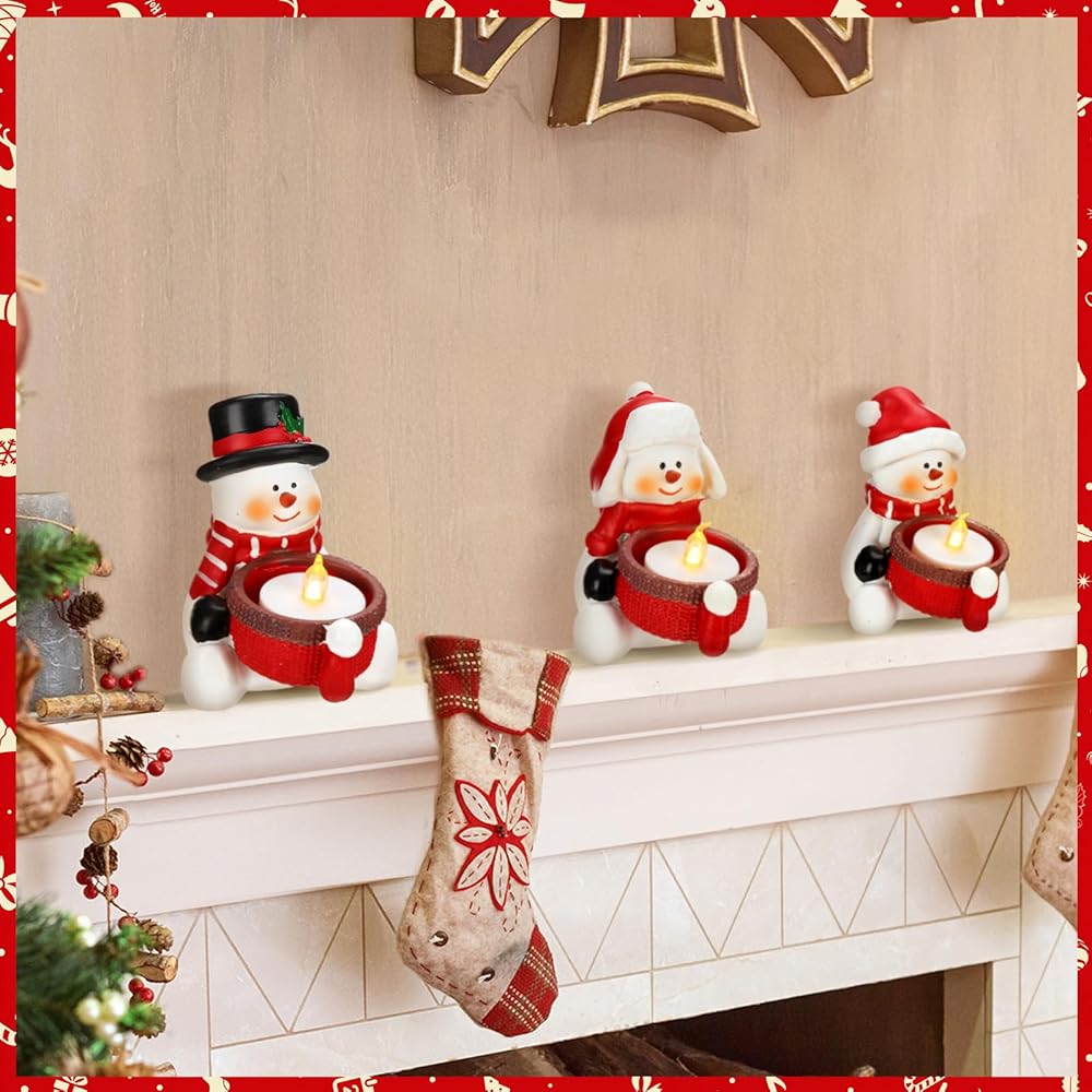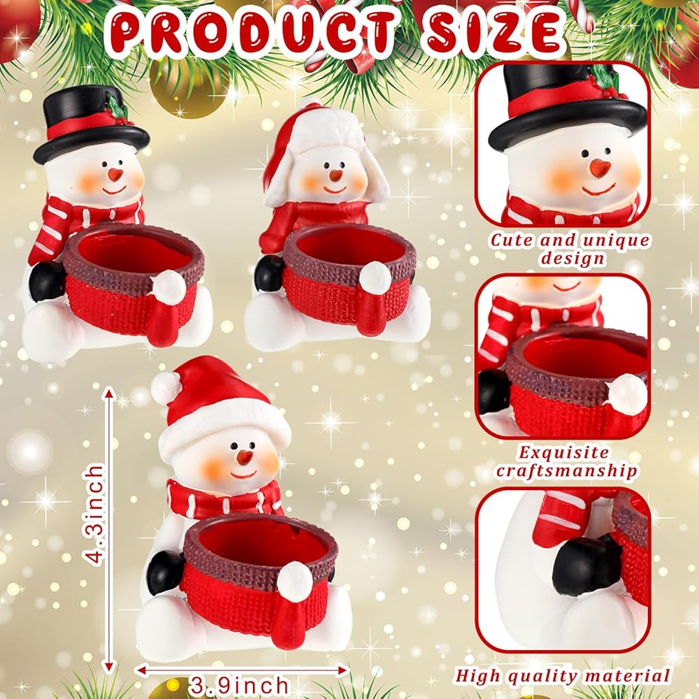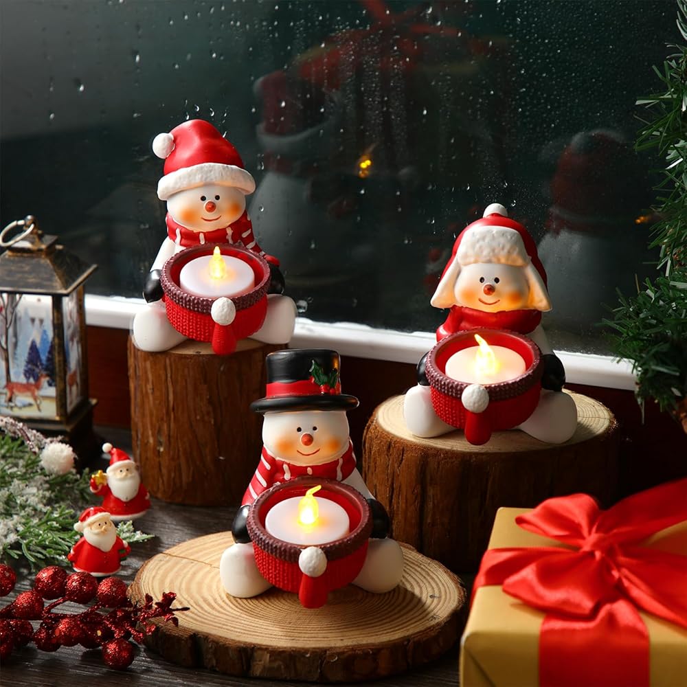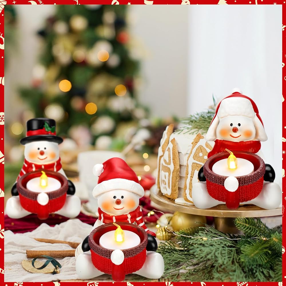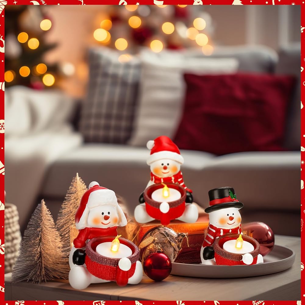 Snowman Tea Light Candle Decoration: package contains 3 snowman tea light candle holders (tea light candles not included); These tea light candle holders are designed with cute snowmen, bringing a delightful festive atmosphere to any room